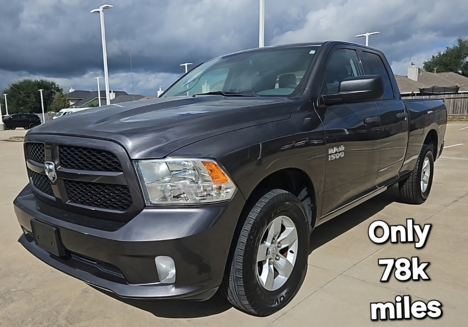 Satellite Radio), Quick Order Package 22J Express (17" x 7" Aluminum Wheels, Body Color Front Fascia, Body Color Grille, Body Color Rear Bumper w/Step Pads, Carpet Floor Covering, Center Hub, Delete Class IV Receiver Hitch, Delete Spray In Bedliner, Front Floor Mats, Front Fog Lamps, Ram 1500 Express, and Rear Floor Mats), 17" x 7" Steel Wheels, 4-Wheel Disc Brakes, 6 Speakers, ABS brakes, Air Conditioning, AM/FM radio, Audio Jack Input for Mobile Devices, Auto-dimming Rear-View mirror, Black Exterior Mirrors, Brake assist, Charge Only Remote USB Port, Delay-off headlights, Driver door bin, Dual front impact airbags, Dual front side impact airbags, Electronic Stability Control, Exterior Mirrors w/Heating Element, Front anti-roll bar, Front Center Armrest, Front wheel independent suspension, Fully automatic headlights, Heated door mirrors, Heavy Duty Vinyl 40/20/40 Split Bench Seat, Integrated Voice Command w/Bluetooth, LED Bed Lighting, Low tire pressure warning, Media Hub (USB, AUX), Occupant sensing airbag, Overhead airbag, ParkView Rear Back-Up Camera, Passenger door bin, Power door mirrors, Power steering, Power windows, Radio data system, Radio: 3.0, Radio: Uconnect 3.0, Rear anti-roll bar, Rear step bumper, Remote USB Port, Speed control, Tachometer, Tilt steering wheel, Traction control, Trailer Brake Control, Variably intermittent wipers, and Voltmeter. Recent Arrival! Odometer is 18897 miles below market average!