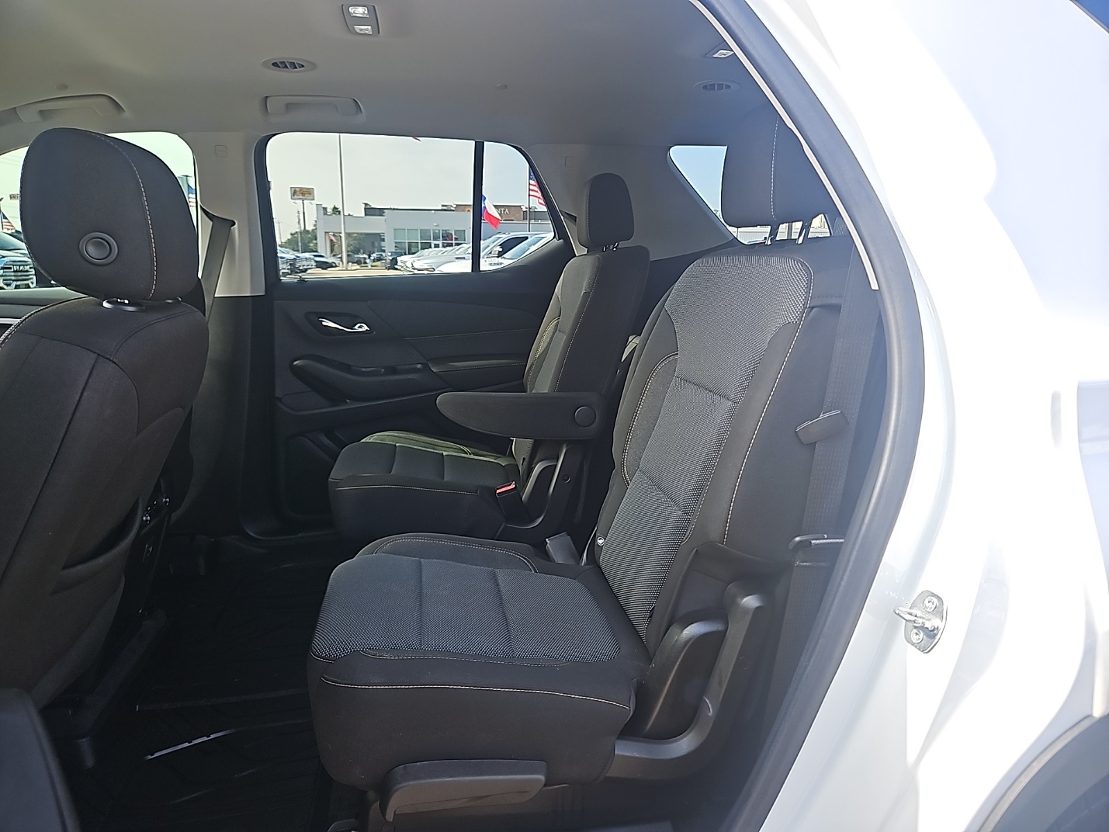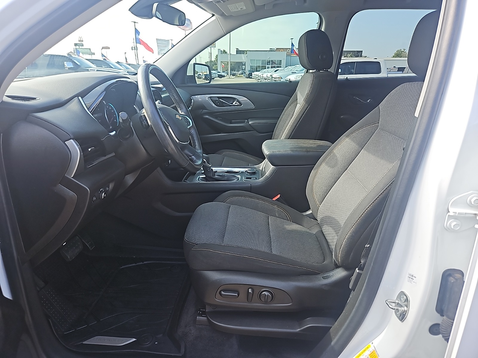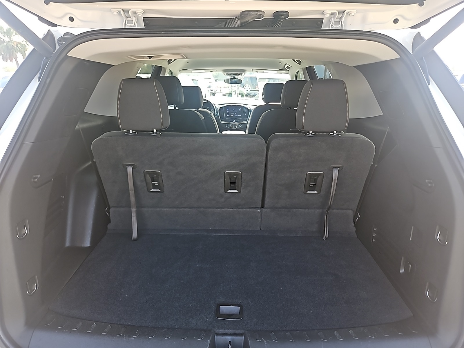 or Enhanced Driver Instrument Display, Heated Driver & Front Passenger Seats, Lane Change Alert w/Side Blind Zone Alert, Radio: Chevrolet Infotainment 3 Plus System, Rear Cross Traffic Alert, Rear Park Assist w/Audible Warning, Rear Power Liftgate, Remote Start, SiriusXM w/360L, and Universal Home Remote), Front License Plate Bracket Mounting Package, Preferred Equipment Group 1LT, 3.49 Axle Ratio, 3rd row seats: split-bench, 4-Wheel Disc Brakes, 6 Speakers, 7-Passenger Seating (2-2-3 Seating Configuration), ABS brakes, Air Conditioning, Alloy wheels, AM/FM radio: SiriusXM, Apple CarPlay/Android Auto, Automatic temperature control, Brake assist, Bright Wheel Locks (LPO), Bumpers: body-color, Compass, Delay-off headlights, Driver door bin, Driver vanity mirror, Dual front impact airbags, Dual front side impact airbags, Electronic Stability Control, Emergency communication system: OnStar and Chevrolet connected services capable, Four wheel independent suspension, Front anti-roll bar, Front Bucket Seats, Front Center Armrest, Front dual zone A/C, Front fog lights, Front reading lights, Fully automatic headlights, Heated door mirrors, High-Intensity Discharge Headlights, Illuminated entry, Leather steering wheel, Low tire pressure warning, Occupant sensing airbag, Outside temperature display, Overhead airbag, Overhead console, Panic alarm, Passenger door bin, Passenger vanity mirror, Power door mirrors, Power driver seat, Power steering, Power windows, Premium Cloth Seat Trim, Radio data system, Radio: Chevrolet Infotainment System AM/FM Stereo, Rear air conditioning, Rear anti-roll bar, Rear reading lights, Rear window defroster, Rear window wiper, Remote keyless entry, Roof rack: rails only, Security system, SiriusXM Radio, Speed control, Speed-sensing steering, Spoiler, Steering wheel mounted audio controls, Tachometer, Telescoping steering wheel, Tilt steering wheel, Traction control, Trip computer, Turn signal indicator mirrors, Variably intermittent wipers, Voltmeter, and Wheels: 18" Bright Silver Painted Aluminum. Recent Arrival! 18/27 City/Highway MPG