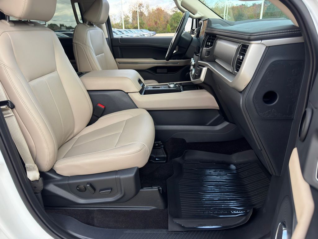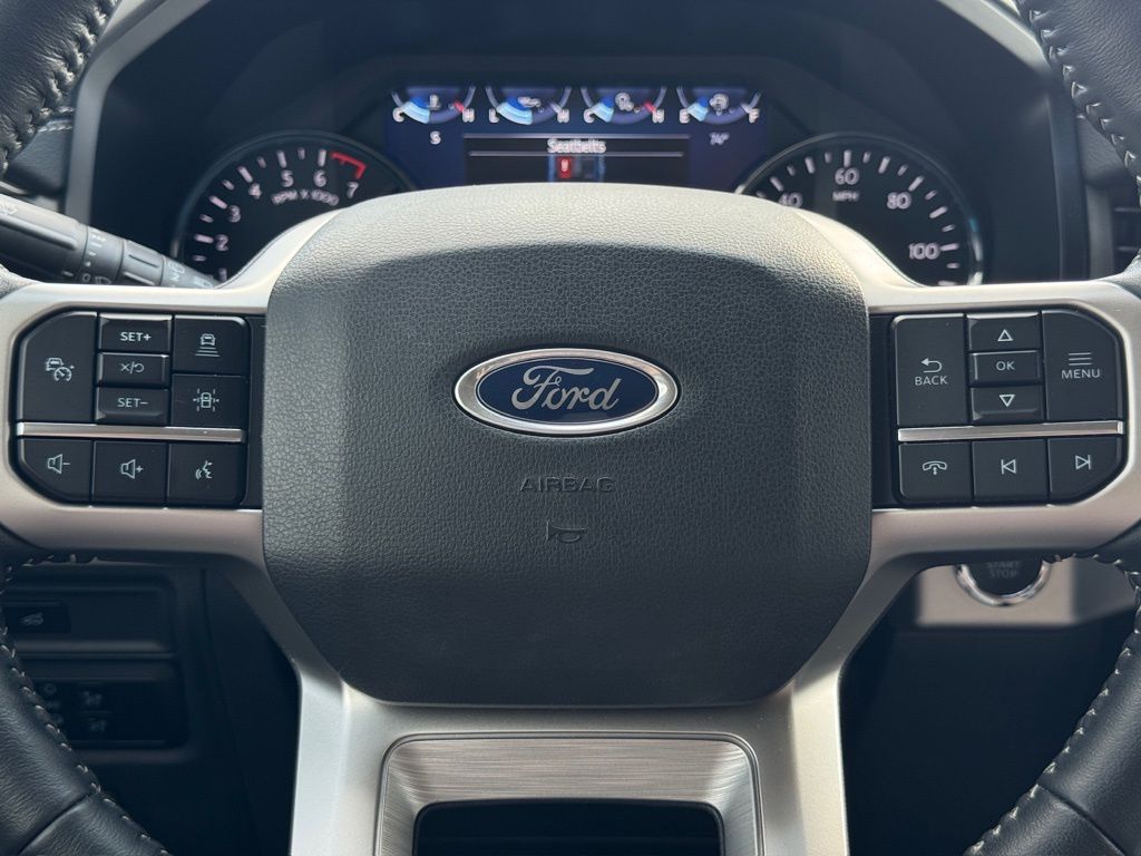 ck, Air Conditioning, Alloy wheels, AM/FM radio: SiriusXM with 360L, Ambient Lighting, Auto High-beam Headlights, Auto Start-Stop Removal (DISC), Auto-dimming Rear-View mirror, Automatic temperature control, Black Roof-Rail Crossbars, Brake assist, Bright Chrome Plated Accent Platform Running Boards, Bumpers: body-color, Cloth Front Captain's Chairs, Compass, Connected Built-In Navigation, Delay-off headlights, Driver door bin, Driver vanity mirror, Dual front impact airbags, Dual front side impact airbags, Electronic Stability Control, Emergency communication system: SYNC 4 911 Assist, Equipment Group 202A High Package, Evasive Steering, Exterior Parking Camera Rear, Four wheel independent suspension, Front anti-roll bar, Front Bucket Seats, Front Center Armrest, Front dual zone A/C, Front Parking Sensors, Front reading lights, Fully automatic headlights, Garage door transmitter, Heated door mirrors, Heated Steering Wheel, Heated/Ventilated Front Seats, Illuminated entry, Intelligent Adaptive Cruise Control, Intersection Assist, Leather steering wheel, LED Fog Lamps w/Black Painted Bezel, LED Reflector Headlamps, Low tire pressure warning, Navigation system: Connected Navigation, Occupant sensing airbag, Outside temperature display, Overhead airbag, Overhead console, Panic alarm, Passenger door bin, Passenger vanity mirror, Power door mirrors, Power driver seat, Power Liftgate, Power steering, Power Tilt/Telescopic Steering Wheel w/Memory, Power windows, Power-Adjustable Pedals w/Memory, Power-Folding Sideview Mirrors w/Autofold, Radio data system, Radio: AM/FM Stereo w/MP3 Capable, Rear air conditioning, Rear anti-roll bar, Rear reading lights, Rear window defroster, Rear window wiper, Reclining 3rd row seat, Remote keyless entry, Remote Start, SecuriCode Keyless Entry Keypad, Security system, Sideview Mirrors w/Turn Signal Indicators, SiriusXM w/360L, Special Edition Package, Speed control, Speed-sensing steering, Speed-Sensitive Wipers, Split folding rear seat, Spoiler, Steering wheel mounted audio controls, SYNC 4 w/Enhanced Voice Recognition, Tachometer, Telescoping steering wheel, Texas Edition Package, Tilt steering wheel, Traction control, Trip computer, Variably intermittent wipers, Vinyl Center Console, Voltmeter, Wheels: 20" Bright Machined Aluminum, Wireless Charging Pad.