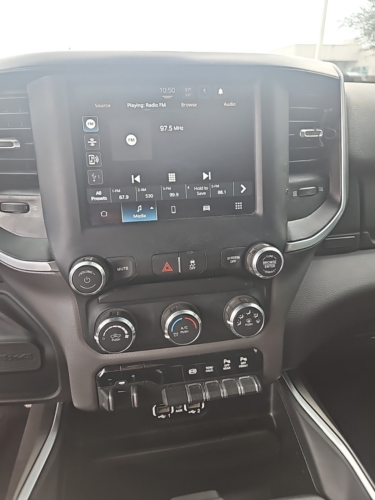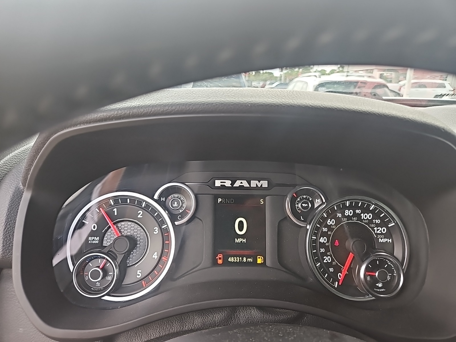 een Display, Apple CarPlay, Auto Power-Folding Mirrors, Big Horn IP Badge, Black Exterior Mirrors, Bluetooth Handsfree Phone & Audio, Center Hub, Connectivity - US/Canada, Dual Glove Boxes, Exterior Mirrors Courtesy Lamps, Exterior Mirrors w/Heating Element, Exterior Mirrors w/Supplemental Signals, Foam Bottle Insert (Door Trim Panel), Footwell Courtesy Lamp, For Details, Visit DriveUconnect.com, For More Info, Call 800-643-2112, Forward & Reverse Utility Lights, Front Armrest w/Cupholders, Front Center Seat Cushion Storage, Front Fog Lamps, Front Seat Back Map Pockets, Global Telematics Box Module (TBM), Glove Box Lamp, Google Android Auto, GPS Antenna Input, Integrated Center Stack Radio, Integrated Voice Command w/Bluetooth, Leather Wrapped Steering Wheel, Locking Lower Glove Box, Manual Adjust 4-Way Front Passenger Seat, Mirror Running Lights, Power 2-Way Driver Lumbar Adjust, Power Adjust 8-Way Driver Seat, Power Adjust Mirrors, Power Adjustable Convex Aux Mirrors, Power Heated Fold Telescope Mirrors, Power Telescoping Mirrors, Rear 60/40 Folding Seat, Rear Dome w/On/Off Switch Lamp, Remote USB Port - Charge Only, Selectable Tire Fill Alert, SiriusXM Radio Service, SiriusXM Satellite Radio, Steering Wheel Mounted Audio Controls, Storage Tray, and Wheels: 18" x 8.0" Polished Aluminum), Off Road Package (Front Performance Tuned Shock Absorbers, Hill Descent Control, Rear Performance Tuned Shock Absorbers, and Tow Hooks), Quick Order Package 2HZ Big Horn, 3.73 Axle Ratio, 4-Wheel Disc Brakes, 6 Speakers, ABS brakes, Active Noise Control System, Air Conditioning, Anti-Spin Differential Rear Axle, Brake assist, Bumpers: chrome, Center Stack Storage Drawer, Chrome Flat Cab-Length Side Steps, Cloth 40/20/40 Bench Seat, Compass, Delay-off headlights, Driver door bin, Dual front impact airbags, Dual front side impact airbags, Electronic Stability Control, Electronically Controlled Throttle, Emergency communication system: SiriusXM Guardian, Front anti-roll bar, Front Center Armrest w/Storage, Front License Plate Bracket, Front reading lights, Fully automatic headlights, Heated door mirrors, Illuminated entry, Low tire pressure warning, Manual Adjust 4-Way Driver Seat, MOPAR Spray In Bedliner, Occupant sensing airbag, Outside temperature display, Overhead airbag, Overhead console, Panic alarm, ParkSense Front/Rear Park Assist System, ParkView Rear Back-Up Camera, Passenger door bin, Passenger vanity mirror, Power door mirrors, Power steering, Power windows, Premium Cloth 40/20/40 Bench Seat (DISC), Radio data system, Radio: Uconnect 3 w/5" Display, Radio: Uconnect 5 W w/8.4" Display, Rear anti-roll bar, Rear Backup Alarm, Rear Folding Seat, Rear seat center armrest, Rear step bumper, Rear Window Defroster, Remote keyless entry, Speed control, Tachometer, Tilt steering wheel, Tip Start, Traction control, Trip computer, Turn signal indicator mirrors, Variably intermittent wipers, Voltmeter, and Wheels: 18" x 8.0" Steel Chrome ClaD. Recent Arrival! Odometer is 5689 miles below market average!