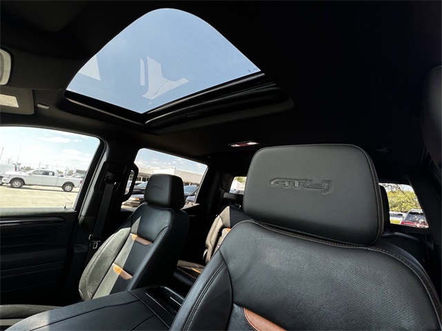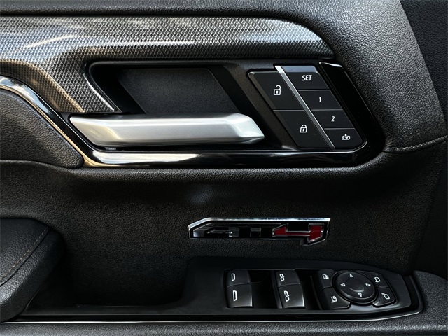 M with 360L, Apple CarPlay/Android Auto, AT4 Preferred Package, AT4 Premium Package, Auto High-beam Headlights, Auto-dimming door mirrors, Auto-dimming Rear-View mirror, Auto-Locking Rear Differential, Automatic Emergency Braking, Automatic temperature control, Bed View Camera, Black Chrome Grille Insert Bars, Block heater, BLUETOOTH / HANDSFREE, Brake assist, Buckle to Drive, Bumpers: body-color, CLEAN CARFAX!, Color-Keyed Carpeting Floor Covering, Compass, Deep-Tinted Glass, Delay-off headlights, Driver door bin, Driver Memory, Driver vanity mirror, Dual front impact airbags, Dual front side impact airbags, Electric Rear-Window Defogger, Electronic Stability Control, Emergency communication system: OnStar, Engine Block Heater, Floor-Mounted Center Console, Following Distance Indicator, Forward Collision Alert, Front anti-roll bar, Front Bucket Seats, Front Center Armrest, Front dual zone A/C, Front fog lights, Front License Plate Kit, Front Pedestrian Braking, Front Prem Floor Liners w/Removable Carpet Insert, Front Rain-Sensing Wipers, Front reading lights, Front wheel independent suspension, Fully automatic headlights, HD Surround Vision, Heated 2nd Row Outboard Seats, Heated door mirrors, Heated Driver & Front Outboard Passenger Seating, Heated front seats, Heated rear seats, Heated steering wheel, Heavy-Duty Air Filter, Hill Descent Control, Hitch Guidance, Hitch View, Illuminated entry, In-Vehicle Trailering System App, Integrated Trailer Brake Controller, IntelliBeam Automatic High Beam On/Off, Keyless Open & Start, Lane Keep Assist w/Lane Departure Warning, LED Cargo Area Lighting, LOCAL TRADE IN!, Low tire pressure warning, Memory seat, Multicolor 15" Diagonal Head-Up Display, NAVIGATION, Navigation System, NON SMOKER VEHICLE, Occupant sensing airbag, Off-Road High Clearance Step (LPO), Off-Road Suspension, OnStar Services Capable, Outside temperature display, Overhead airbag, Overhead console, Panic alarm, Passenger door bin, Passenger vanity mirror, Perforated Front Leather Seat Trim, Perimeter Lighting, Power Door Locks, Power door mirrors, Power driver seat, Power Front Passenger Windows w/Express Up/Down, Power Front Windows w/Driver Express Up/Down, Power passenger seat, Power Rake & Telescoping Steering Column, Power Rear Windows w/Express Down, Power Sliding Rear Window w/Rear Defogger, Power steering, Power Sunroof, Power windows, Preferred Equipment Group 4SB, Premium Bose 7-Speaker Sound System, PROFESSIONALLY DETAILED FOR DELIVERY!, Push Button Start, Radio data system, Radio: Premium GMC Infotainment Audio System, Rain sensing wipers, Rear Camera Mirror, Rear Cross Traffic Braking, Rear Pedestrian Detection, Rear Prem Floor Liners w/Removable Carpet Insert, Rear reading lights, Rear seat center armrest, Rear step bumper, Rear Wheelhouse Liners, Rear window defroster, Red Recovery Hooks, Remote keyless entry, Remote Vehicle Starter System, Safety Alert Seat, Security system, SiriusXM w/360L Trial Subscription, Speed control, Speed-sensing steering, Split folding rear seat, Spray-On Pickup Bedliner w/GMC Logo, Steering Wheel Audio Controls, Steering wheel mounted audio controls, SUNROOF/MOONROOF, SUPER LOW MILES!, Tachometer, Technology Package, Telescoping steering wheel, Theft Deterrent System (Unauthorized Entry), Tilt steering wheel, Traction control, Trailer Camera Provisions, Trailer Side Blind Zone Alert, Trailering Package, Trip computer, Ultrasonic Front & Rear Park Assist, Universal Home Remote, Variably