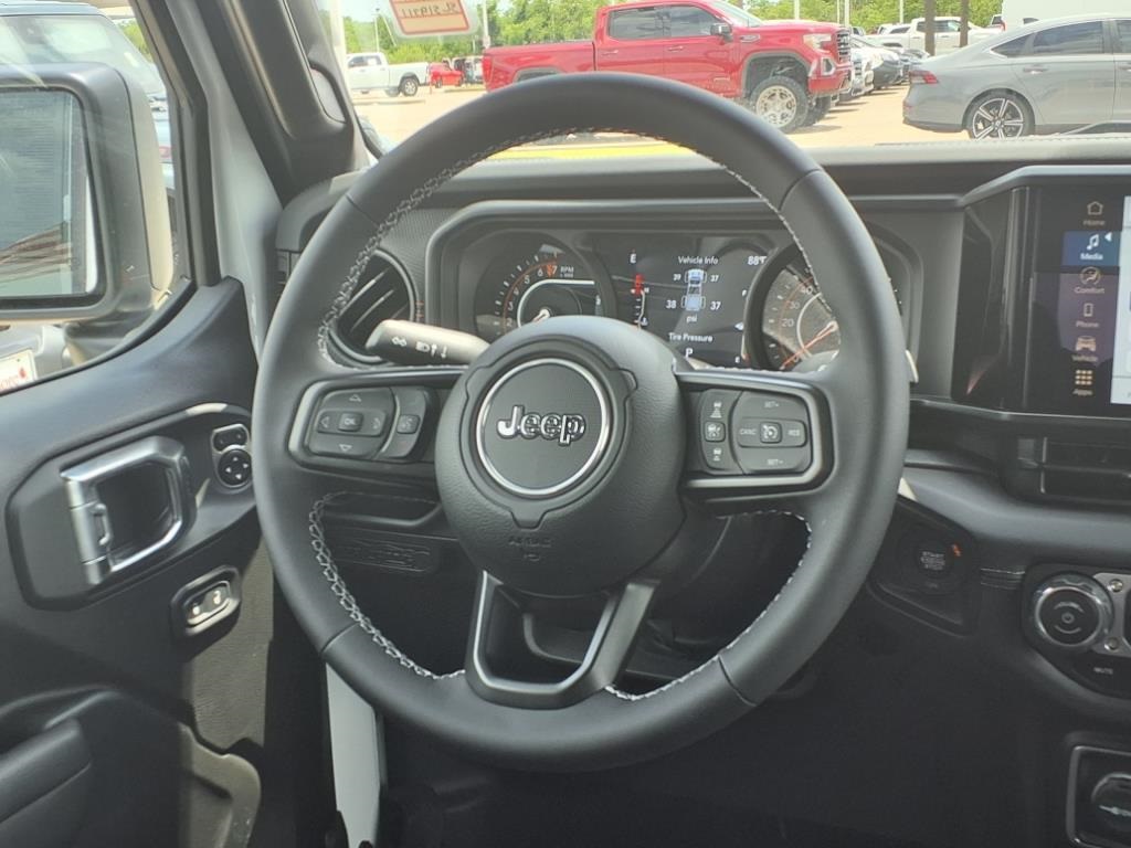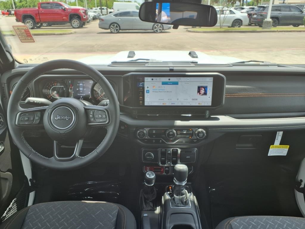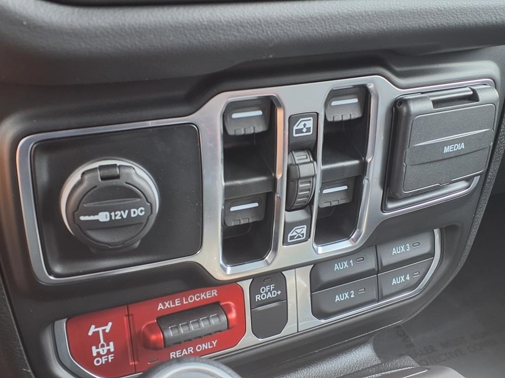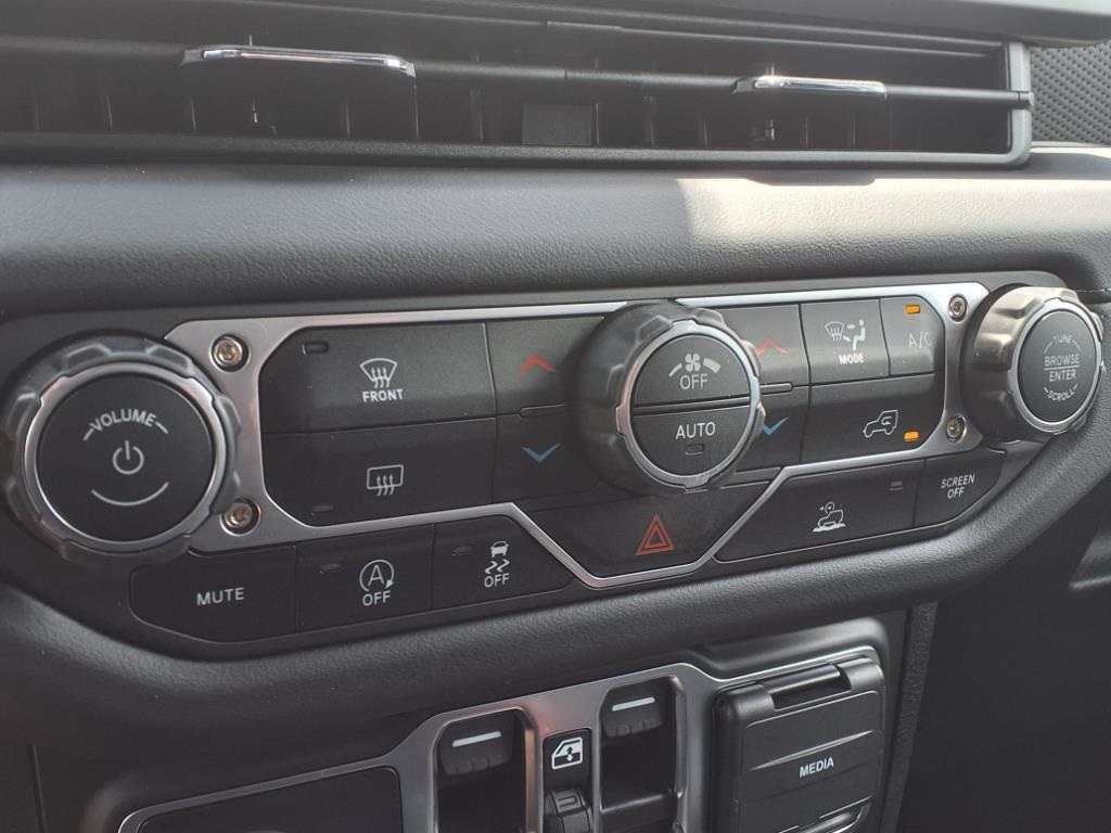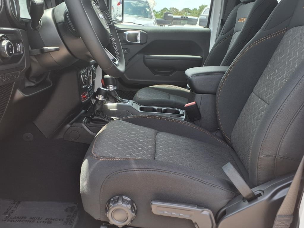 vity - US/Canada, Delay-off headlights, Driver door bin, Driver vanity mirror, Dual front impact airbags, Dual front side impact airbags, Electronic Stability Control, Emergency communication system: Jeep Connect, Front anti-roll bar, Front Bucket Seats, Front Center Armrest w/Storage, Front dual zone A/C, Front fog lights, Front License Plate Bracket, Front reading lights, Fully automatic headlights, Google Android Auto, Heated door mirrors, Heavy Duty Suspension w/Gas Shocks, Illuminated entry, Integrated roll-over protection, Low tire pressure warning, MOPAR Spray In Bedliner, Occupant sensing airbag, Outside temperature display, Overhead airbag, Panic alarm, Passenger door bin, Passenger vanity mirror, Power door mirrors, Power steering, Power windows, Premium Cloth Seats w/Sport Bolsters, Radio data system, Radio: Uconnect 5 w/12.3" Display, Rear anti-roll bar, Rear reading lights, Remote keyless entry, Security system, Speed control, Split folding rear seat, Steering wheel mounted audio controls, Tachometer, Telescoping steering wheel, Tilt steering wheel, Traction control, Trip computer, USB Host Flip, Variably intermittent wipers, Voltmeter, and Wheels: 17" x 7.5" Dark Gray Painted.