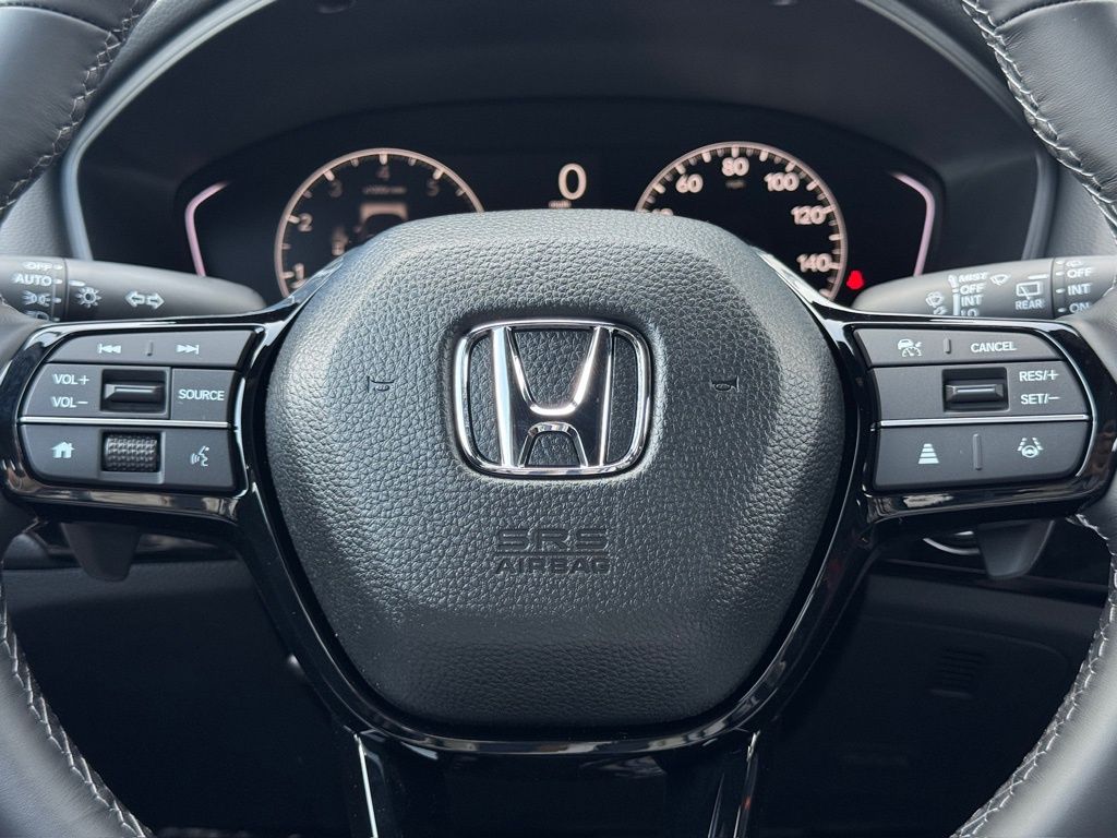 Black Artificial Leather, 4-Wheel Disc Brakes, 8 Speakers, ABS brakes, Adaptive Cruise Control: Adaptive Cruise Control (ACC) with Low-Speed Follow, Air Conditioning, Alloy wheels, AM/FM radio, Apple CarPlay/Android Auto, Auto High-beam Headlights, Automatic temperature control, Blind Spot Information (BSI) System warning, Brake assist, Bumpers: body-color, Cloth/Leatherette Seating Surfaces, Delay-off headlights, Driver door bin, Driver vanity mirror, Dual front impact airbags, Dual front side impact airbags, Electronic Stability Control, Emergency communication system: HondaLink, Exterior Parking Camera Rear, Four wheel independent suspension, Front anti-roll bar, Front Bucket Seats, Front Center Armrest, Front reading lights, Fully automatic headlights, Heated door mirrors, HondaLink, Illuminated entry, Knee airbag, Lane departure: Lane Keeping Assist System (LKAS) active, Leather Shift Knob, Low tire pressure warning, Occupant sensing airbag, Outside temperature display, Overhead airbag, Panic alarm, Passenger door bin, Passenger vanity mirror, Power door mirrors, Power steering, Power windows, Radio data system, Radio: 180-Watt Audio System, Rear anti-roll bar, Rear side impact airbag, Rear window defroster, Rear window wiper, Remote keyless entry, Security system, Speed control, Speed-sensing steering, Split folding rear seat, Steering wheel mounted audio controls, Tachometer, Telescoping steering wheel, Tilt steering wheel, Traction control, Trip computer, and Wheels: 18" Gloss Black Alloy.