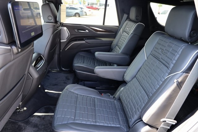 The Sport trim is all about power with exceptional presence. An exquisitely crafted interior with full Semi-Aniline leather sets joins a commanding exterior presence and leading-edge technology like the standard AKG 36-SPEAKER Studio Reference audio system to create the ultimate Escalade experience. Sport also includes features found in the Premium Luxury Package such asPanoramic sunroof, Head-up display, Leather upholstery, Heated and ventilated front seats, Adaptive cruise control, and a Automated parking system.