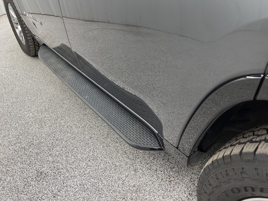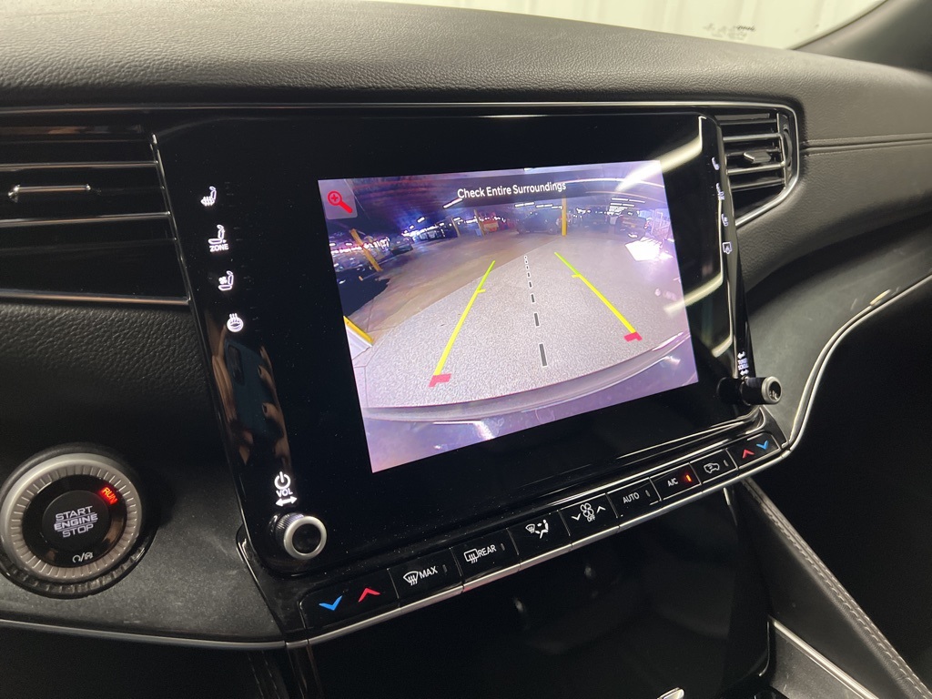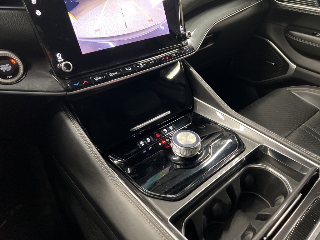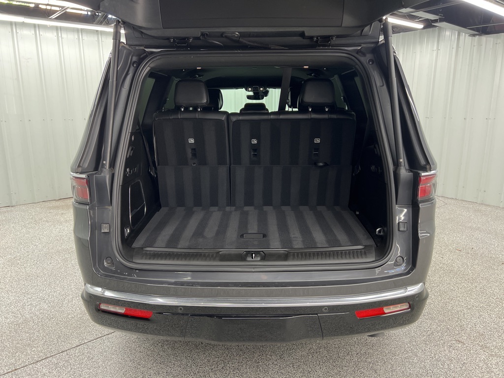 irror, Auto-leveling suspension, Automatic temperature control, Brake assist, Bumpers: body-color, Compass, Delay-off headlights, Driver door bin, Driver vanity mirror, Driver's Seat Mounted Armrest, Dual front impact airbags, Dual front side impact airbags, Electronic Stability Control, Exterior Parking Camera Rear, Four wheel independent suspension, Front anti-roll bar, Front Bucket Seats, Front Center Armrest w/Storage, Front dual zone A/C, Front fog lights, Front reading lights, Fully automatic headlights, Garage door transmitter, Heated door mirrors, Heated front seats, Heated steering wheel, Illuminated entry, Knee airbag, Leather Trimmed Bucket Seats, Low tire pressure warning, Memory seat, Navigation System, Normal Duty Suspension, Occupant sensing airbag, Outside temperature display, Overhead airbag, Overhead console, Panic alarm, Passenger door bin, Passenger seat mounted armrest, Passenger vanity mirror, Pedal memory, Power adjustable front head restraints, Power door mirrors, Power driver seat, Power Liftgate, Power passenger seat, Power steering, Power windows, Radio data system, Radio: Uconnect 5 Nav w/10.1" Display, Rear air conditioning, Rear anti-roll bar, Rear dual zone A/C, Rear reading lights, Rear seat center armrest, Rear window defroster, Rear window wiper, Reclining 3rd row seat, Remote keyless entry, Security system, Speed control, Speed-sensing steering, Speed-Sensitive Wipers, Split folding rear seat, Steering wheel memory, Steering wheel mounted audio controls, Tachometer, Telescoping steering wheel, Tilt steering wheel, Traction control, Trip computer, Turn signal indicator mirrors, Variably intermittent wipers, Ventilated front seats, Voltmeter, and Wheels: 18" x 8.0" Aluminum Base Finish.