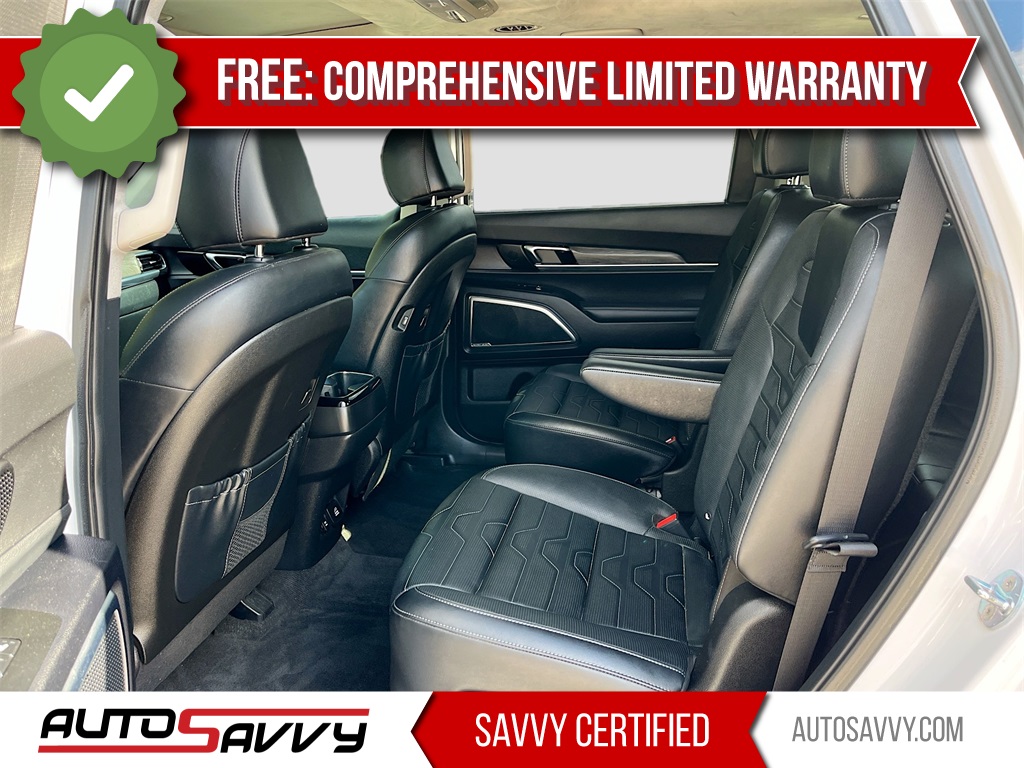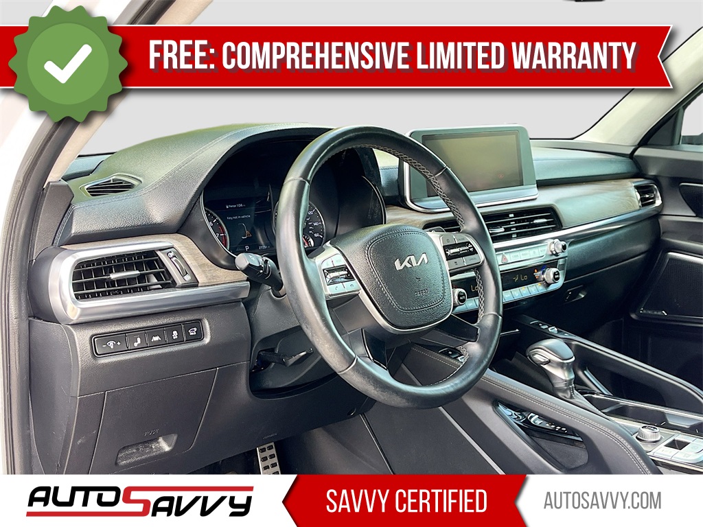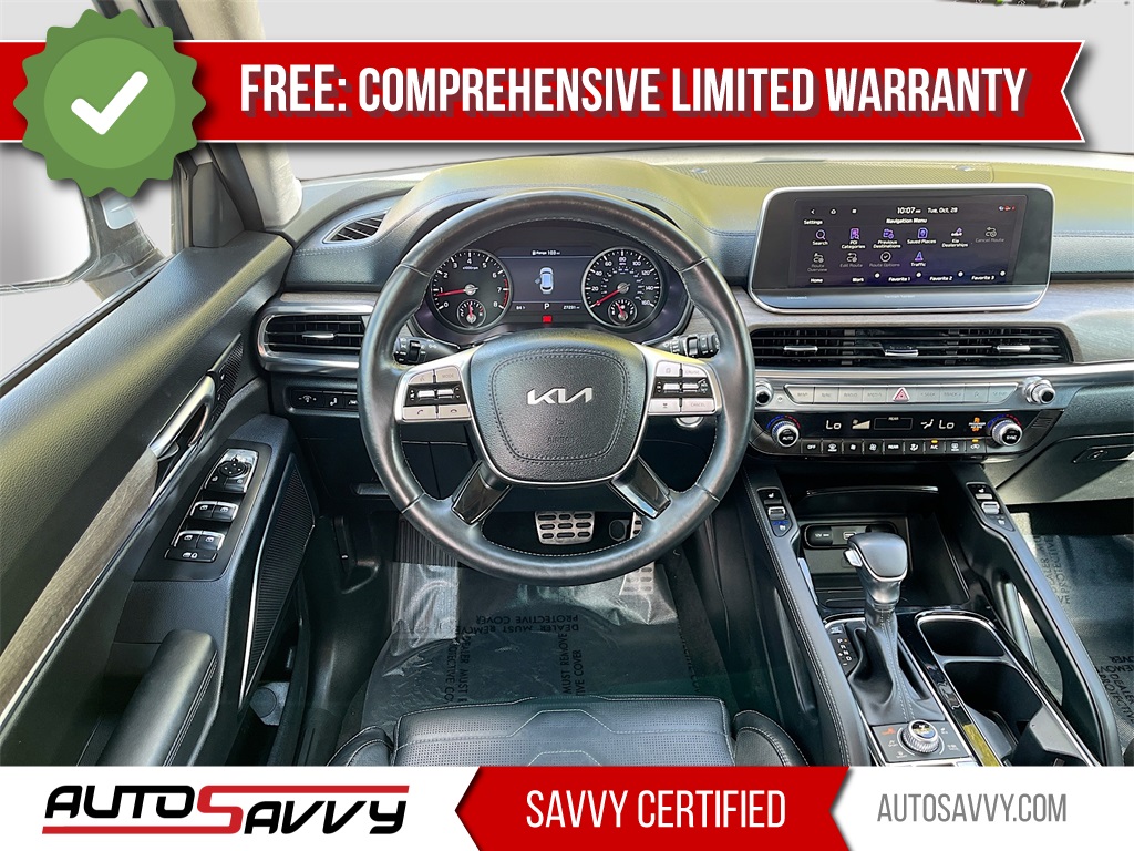 ghway and 19 MPG in the city. Enjoy a wealth of standard features, including a 10.2-inch touchscreen with Apple CarPlay and Android Auto, a Harman Kardon audio system, and advanced safety technologies like adaptive cruise control and a blind-spot monitor. The SX Prestige Package adds a touch of luxury with heated and ventilated second-row seats, a head-up display, and rain-sensing front wipers. This 2022 Kia Telluride comes with a branded title, reflecting AutoSavvy's commitment to offering high-quality vehicles at exceptional value. As a Savvy Certified vehicle, it includes the reassurance of a 4-month/4,500-mile warranty, providing peace of mind with your purchase. Each vehicle at AutoSavvy undergoes a meticulous inspection to meet the highest standards of quality and reliability. Visit AutoSavvy Houston Northwest today to test drive this exceptional Kia Telluride and experience the perfect blend of performance, comfort, and cutting-edge technology. Join the community of savvy buyers who trust AutoSavvy for their automotive needs.