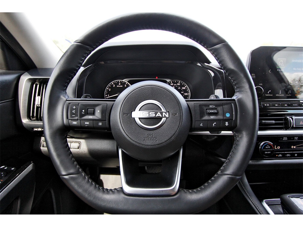 body-color, Cross Bars, Delay-off headlights, Driver door bin, Driver vanity mirror, Dual front impact airbags, Dual front side impact airbags, Electronic Stability Control, Emergency communication system, Exterior Parking Camera Rear, Four wheel independent suspension, Front anti-roll bar, Front Bucket Seats, Front Center Armrest, Front dual zone A/C, Front reading lights, Fully automatic headlights, Garage door transmitter: HomeLink, Heated door mirrors, Heated Front Bucket Seats, Heated front seats, Heated steering wheel, Illuminated entry, Knee airbag, Leather steering wheel, Leather-Appointed Seating Surfaces, Low tire pressure warning, Navigation system: NissanConnect with Navigation and Services, NissanConnect featuring Apple CarPlay and Android Auto, NissanConnect w/Navigation & Services, Occupant sensing airbag, Outside temperature display, Overhead airbag, Overhead console, Panic alarm, Passenger door bin, Passenger vanity mirror, Power door mirrors, Power driver seat, Power Liftgate, Power passenger seat, Power steering, Power windows, Radio data system, Radio: AM/FM Audio System, Rear air conditioning, Rear anti-roll bar, Rear reading lights, Rear seat center armrest, Rear side impact airbag, Rear window defroster, Rear window wiper, Reclining 3rd row seat, Remote keyless entry, Security system, Speed control, Speed-sensing steering, Split folding rear seat, Spoiler, Steering wheel mounted audio controls, Tachometer, Telescoping steering wheel, Tilt steering wheel, Traction control, Trip computer, Turn signal indicator mirrors, Variably intermittent wipers, and Wheels: 18" x 8J Machined Alloy!!
