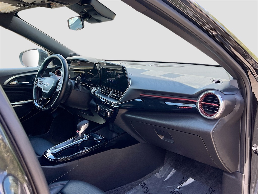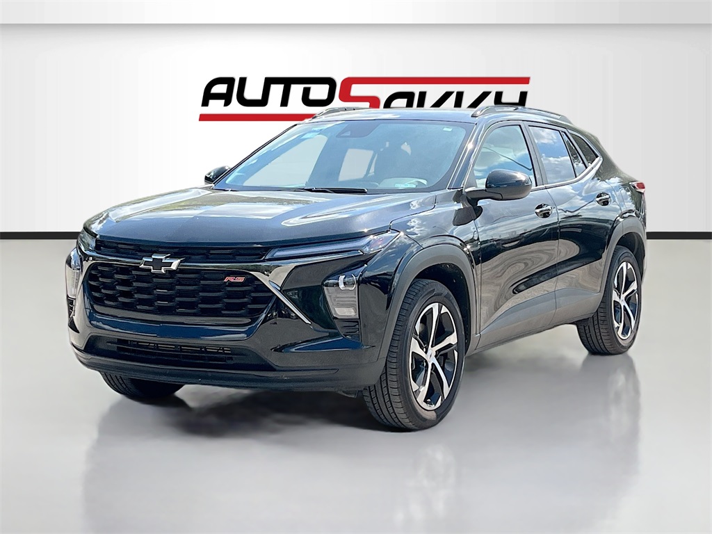 Discover the sleek and sophisticated 2025 Chevrolet Trax FWD 2RS at AutoSavvy Houston Northwest. This compact SUV, finished in Mosaic Black Metallic with a Jet Black interior accented in red, is designed to impress with its ECOTEC 1.2L I-3 turbocharged engine delivering 137 horsepower. With just 12,768 miles on the odometer, this low-mileage Trax promises reliability and efficiency, achieving up to 32 MPG on the highway. Experience comfort and convenience with features like leatherette front sea