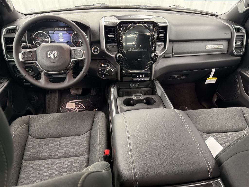 Level 2 Equipment Group (115V Auxiliary Power Outlet, 115V Auxiliary Rear Power Outlet, 12" Touchscreen Display, 2nd Row In Floor Storage Bins, 400W Inverter, 4G LTE Wi-Fi Hot Spot, 9 Amplified Speakers w/Subwoofer, Air Conditioning ATC w/Dual Zone Control, Apple CarPlay, Auto Power-Folding Mirrors, Auto-Dimming Exterior Driver Mirror, Auto-Dimming Rear-View Mirror, Black Exterior Mirrors, Black Premium Power Mirrors, Cluster 7.0" TFT Color Display, Configurable Drive Mode, Connected Travel & Traffic Services, Connectivity - US/Canada, Convex Wide-Angle Exterior Mirror Insert, Exterior Mirrors Courtesy Lamps, Exterior Mirrors w/Heating Element, Exterior Mirrors w/Supplemental Signals, Glove Box Lamp, Google Android Auto, GPS Antenna Input, GPS Navigation, HD Radio, Heated Front Seats, Heated Steering Wheel, Integrated Voice Command w/Bluetooth, Leather Wrapped Steering Wheel, LED Dome Lamp w/On/Off Switch, LED Footwell Lighting, Media Hub w/2 Charge Only USBs, Overhead LED Lamps, Power 2-Way Driver Lumbar Adjust, Power Adjust 8-Way Driver Seat, Power Adjustable Pedals, Premium Overhead Console, Radio: Uconnect 5 Nav w/12.0" Display, Rear Power Sliding Window, Rear Window Defroster, Remote Tailgate Release, Security Alarm, SiriusXM w/360L, Steering Wheel Mounted Audio Controls, Sun Visors w/Illuminated Vanity Mirrors, Universal Garage Door Opener, and USB Host Flip), Night Edition (3 Rear Seat Head Restraints, 4 Way Front Headrests, Accent Color Door Handles, Accent Color Premium Power Mirrors, Accent Color Tailgate Handle, Anti-Spin Differential Rear Axle, Black Exterior Truck Badging, Black Headlamp Bezels, Black Interior Accents, Black Painted Exterior Mirrors Caps, Black Tail Lamp Bezels, Body Color Front Bumper, Body Color Rear Bumper w/Step Pads, Bucket Seats, Deluxe Cloth Bucket Seats, Front Seat Back Map Pockets, Full Length Floor Console, Grille Black Surround Black Mesh, Manual Adjust 4-Way Front Passenger Seat, RAM Grille Badge - Black, Rear 60/40 Folding Seat, Rear Center Armrest, and Wheels: 20" x 9.0" Aluminum Painted Clad), Quick Order Package 23R Lone Star (Regional) (Lone Star Badge), 4-Wheel Disc Brakes, 6 Speakers, ABS brakes, Air Conditioning, Alloy wheels, AM/FM radio, Apple CarPlay/Android Auto, Auto High-beam Headlights, Brake assist, Bumpers: chrome, Cloth Bench Seat, Compass, Delay-off headlights, Driver door bin, Dual front impact airbags, Dual front side impact airbags, Electronic Stability Control, Front anti-roll bar, Front Center Armrest w/Storage, Front fog lights, Front License Plate Bracket, Front reading lights, Front wheel independent suspension, Fully automatic headlights, Heated door mirrors, Illuminated entry, Low tire pressure warning, Manual Folding Exterior Mirrors, MOPAR Front & Rear Rubber Floor Mats, Occupant sensing airbag, Outside temperature display, Overhead airbag, Overhead console, Panic alarm, ParkView Rear Back-Up Camera, Passenger door bin, Passenger vanity mirror, Power door mirrors, Power steering, Power windows, Radio data system, Radio: Uconnect 5 W w/8.4" Display, RAM Grille Badge - Chrome, Rear anti-roll bar, Rear seat center armrest, Rear step bumper, Remote keyless entry, Speed control, Split folding rear seat, Supplier Part Tracking (J-1), Tachometer, Telescoping steering wheel, Tilt steering wheel, Traction control, Trip computer, Variably intermittent wipers, Voltmeter, and Wheels: 18" x 8" Cast-Alum Price includes: 10% Msrp - 2025 National 10% Below MSRP . Exp. 11/03/2025