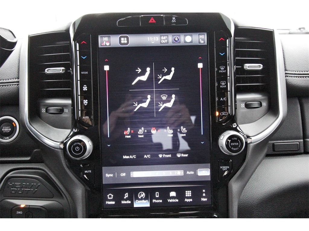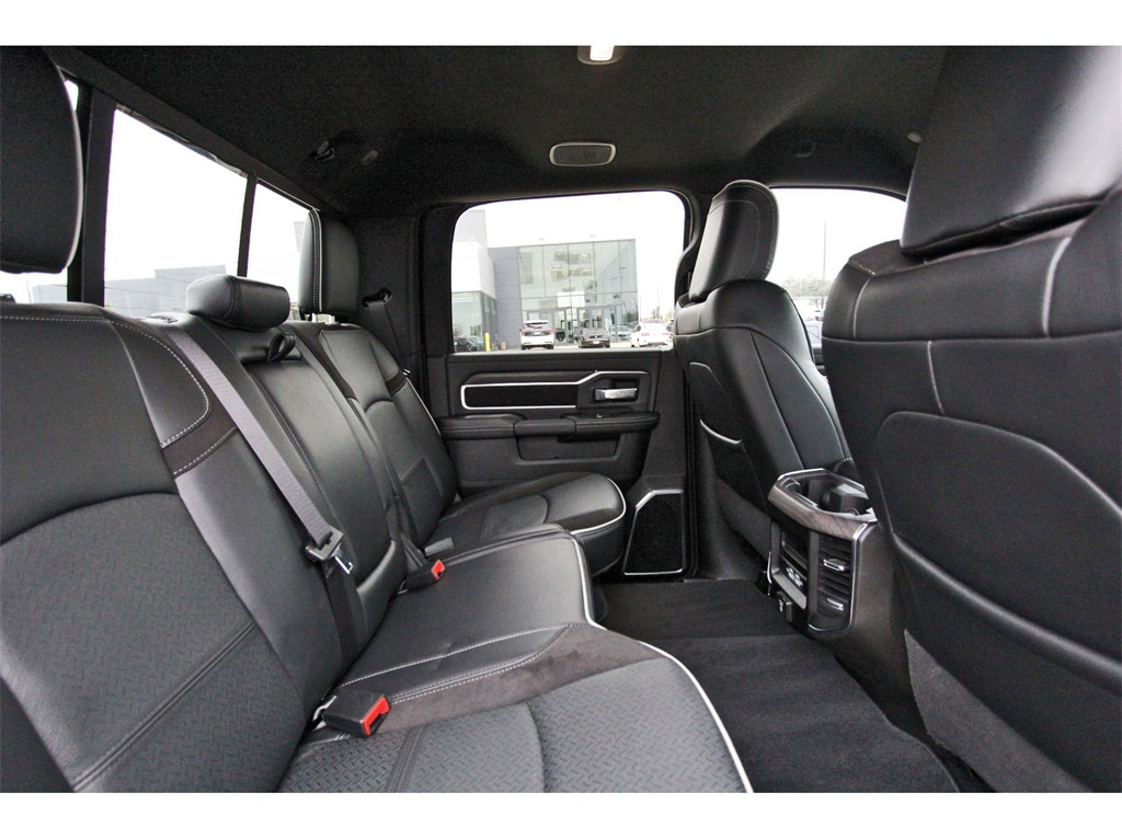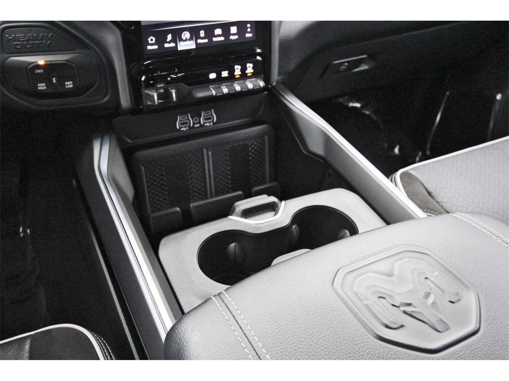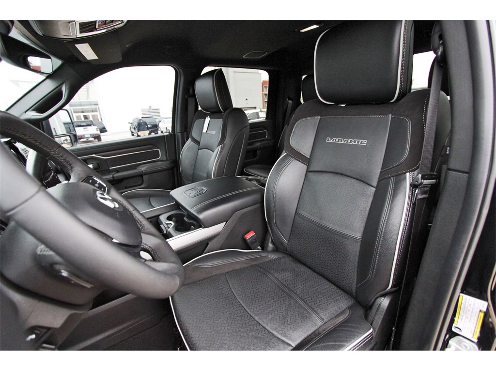 or Mirrors w/Heating Element, Exterior Mirrors w/Memory, Exterior Mirrors w/Supplemental Signals, Foam Bottle Insert (Door Trim Panel), Forward & Reverse Utility Lights, Mirror Running Lights, Power Adjust Mirrors, Power Adjustable Convex Aux Mirrors, Power Adjustable Pedals w/Memory, Power Heated Fold Telescopic Mirrors w/Memory, Power Telescoping Mirrors, Rain Sensitive Windshield Wipers, and Remote Tailgate Release), Quick Order Package 24H Laramie, 10 Speakers, 115V Auxiliary Rear Power Outlet, 2 Way Rear Headrest Seat, 4 Way Front Headrests, 4-Wheel Disc Brakes, 4G LTE Wi-Fi Hot Spot, 5th Wheel/Gooseneck Towing Prep Group, ABS brakes, Air Conditioning, Alexa Built-In, Alloy wheels, AM/FM radio: SiriusXM with 360L, Apple CarPlay, Apple CarPlay/Android Auto, Auto-dimming Rear-View mirror, Automatic temperature control, Black Wheel Center Hub, Brake assist, Bumpers: body-color, Chrome Flat Wheel-to-Wheel Side Steps, Compass, Connected Travel & Traffic Services, Connectivity - US/Canada, Delay-off headlights, Disassociated Touchscreen Display, Driver door bin, Driver vanity mirror, Dual front impact airbags, Dual front side impact airbags, Electronic Stability Control, Emergency Vehicle Alert System (EVAS), Folding Flat Load Floor Storage, Front anti-roll bar, Front Center Armrest w/Storage, Front dual zone A/C, Front fog lights, Front License Plate Bracket, Front reading lights, Front Seat Back Map Pockets, Fully automatic headlights, Garage door transmitter, Global Telematics Box Module (TBM), Google Android Auto, GPS Antenna Input, HD Radio, Heated door mirrors, Heated Front Seats, Heated front seats, Heated Steering Wheel, Heated steering wheel, High Back Seats, Illuminated entry, Integrated Voice Command w/Bluetooth, Leather Trim 40/20/40 Bench Seat, Low tire pressure warning, Manufacturer's Statement of Origin, Navigation System, Occupant sensing airbag, Outside temperature display, Overhead airbag, Overhead console, Panic alarm, ParkView Rear Back-Up Camera, Passenger door bin, Passenger vanity mirror, Power 2-Way Driver Lumbar Adjust, Power 2-Way Passenger Lumbar Adjust, Power Adjust 8-Way Driver Seat, Power Adjust 8-Way Front Passenger Seat, Power door mirrors, Power driver seat, Power passenger seat, Power steering, Power windows, Radio data system, Radio: Uconnect 5 Nav w/12.0" Display, Rear 60/40 Folding Seat, Rear anti-roll bar, Rear reading lights, Rear seat center armrest, Rear step bumper, Rear window defroster, Remote keyless entry, Security system, Selectable Tire Fill Alert, SiriusXM Radio Service, Speed control, Split folding rear seat, Steering wheel mounted audio controls, Tachometer, Tilt steering wheel, Traction control, Trip computer, Turn signal indicator mirrors, Variably intermittent wipers, Voltmeter, and Wheels: 18" x 8.0" Diam Cut Alum w/Blk Pt Pock!!