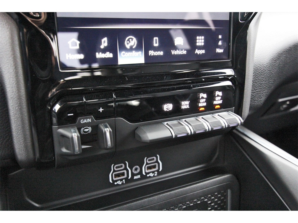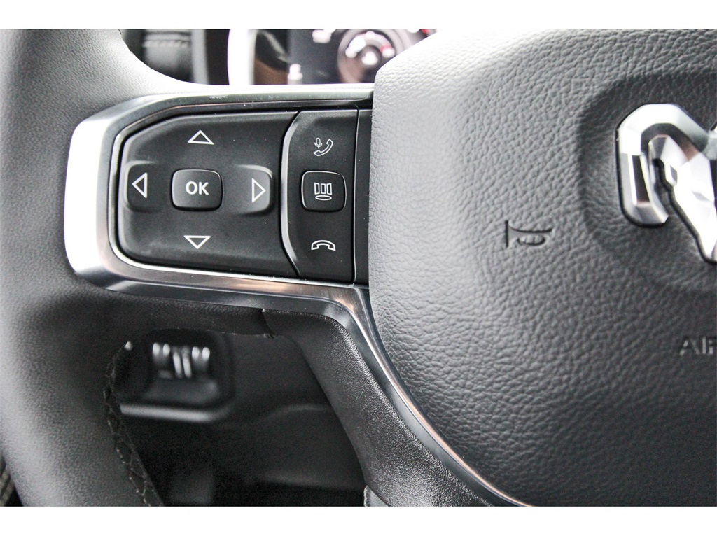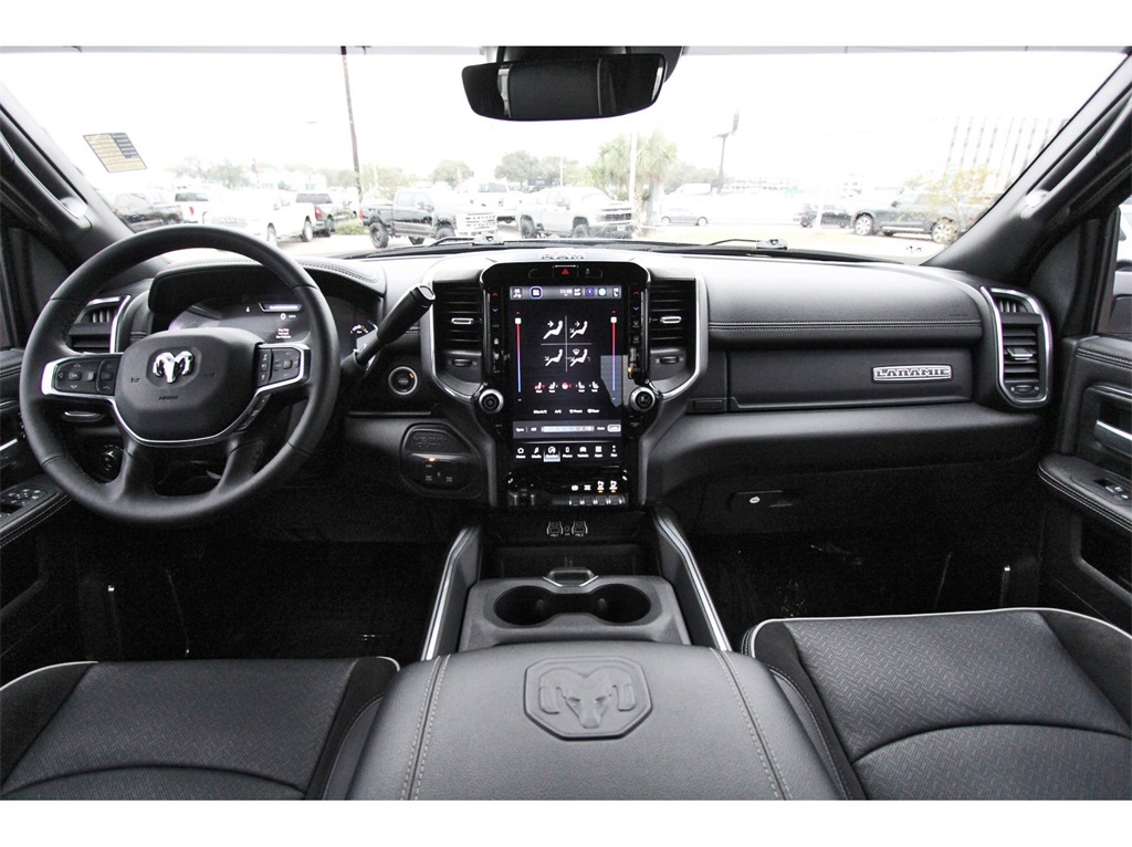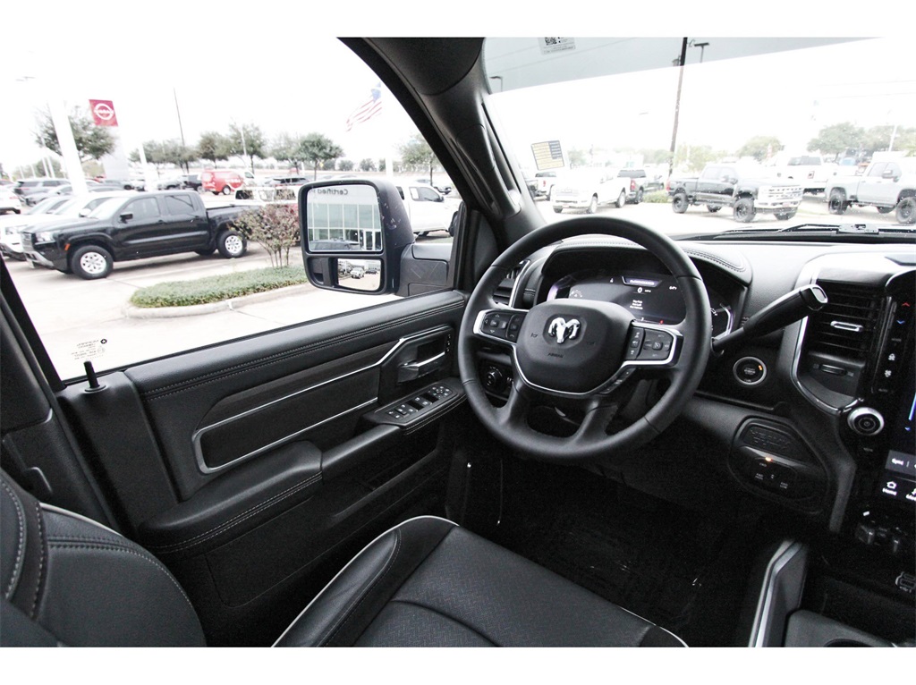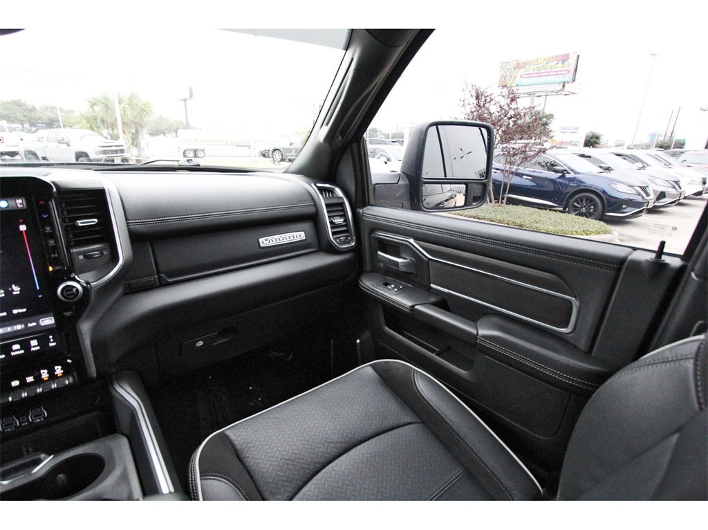 or Mirrors w/Heating Element, Exterior Mirrors w/Memory, Exterior Mirrors w/Supplemental Signals, Foam Bottle Insert (Door Trim Panel), Forward & Reverse Utility Lights, Mirror Running Lights, Power Adjust Mirrors, Power Adjustable Convex Aux Mirrors, Power Adjustable Pedals w/Memory, Power Heated Fold Telescopic Mirrors w/Memory, Power Telescoping Mirrors, Rain Sensitive Windshield Wipers, and Remote Tailgate Release), Quick Order Package 24H Laramie, 10 Speakers, 115V Auxiliary Rear Power Outlet, 2 Way Rear Headrest Seat, 4 Way Front Headrests, 4-Wheel Disc Brakes, 4G LTE Wi-Fi Hot Spot, 5th Wheel/Gooseneck Towing Prep Group, ABS brakes, Air Conditioning, Alexa Built-In, Alloy wheels, AM/FM radio: SiriusXM with 360L, Apple CarPlay, Apple CarPlay/Android Auto, Auto-dimming Rear-View mirror, Automatic temperature control, Black Wheel Center Hub, Brake assist, Bumpers: body-color, Chrome Flat Wheel-to-Wheel Side Steps, Compass, Connected Travel & Traffic Services, Connectivity - US/Canada, Delay-off headlights, Disassociated Touchscreen Display, Driver door bin, Driver vanity mirror, Dual front impact airbags, Dual front side impact airbags, Electronic Stability Control, Emergency Vehicle Alert System (EVAS), Folding Flat Load Floor Storage, Front anti-roll bar, Front Center Armrest w/Storage, Front dual zone A/C, Front fog lights, Front License Plate Bracket, Front reading lights, Front Seat Back Map Pockets, Fully automatic headlights, Garage door transmitter, Global Telematics Box Module (TBM), Google Android Auto, GPS Antenna Input, HD Radio, Heated door mirrors, Heated Front Seats, Heated front seats, Heated Steering Wheel, Heated steering wheel, High Back Seats, Illuminated entry, Integrated Voice Command w/Bluetooth, Leather Trim 40/20/40 Bench Seat, Low tire pressure warning, Manufacturer's Statement of Origin, Navigation System, Occupant sensing airbag, Outside temperature display, Overhead airbag, Overhead console, Panic alarm, ParkView Rear Back-Up Camera, Passenger door bin, Passenger vanity mirror, Power 2-Way Driver Lumbar Adjust, Power 2-Way Passenger Lumbar Adjust, Power Adjust 8-Way Driver Seat, Power Adjust 8-Way Front Passenger Seat, Power door mirrors, Power driver seat, Power passenger seat, Power steering, Power windows, Radio data system, Radio: Uconnect 5 Nav w/12.0" Display, Rear 60/40 Folding Seat, Rear anti-roll bar, Rear reading lights, Rear seat center armrest, Rear step bumper, Rear window defroster, Remote keyless entry, Security system, Selectable Tire Fill Alert, SiriusXM Radio Service, Speed control, Split folding rear seat, Steering wheel mounted audio controls, Tachometer, Tilt steering wheel, Traction control, Trip computer, Turn signal indicator mirrors, Variably intermittent wipers, Voltmeter, and Wheels: 18" x 8.0" Diam Cut Alum w/Blk Pt Pock!!