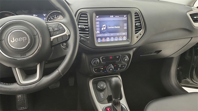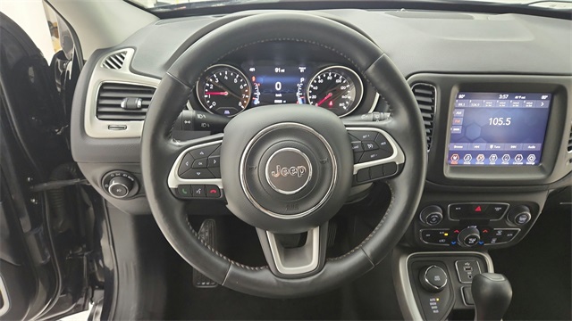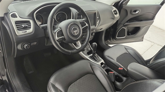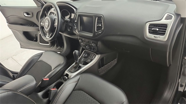 This 2019 Jeep Compass Latitude in Diamond Black Crystal Pearlcoat comes with the following features: 2.4L I4 9-Speed Automatic 4WD Cold Weather Group (All-Season Floor Mats, Heated Front Seats, Heated Steering Wheel, Reversible Carpet/Vinyl Cargo Mat, and Windshield Wiper De-Icer), Popular Equipment Group (4-Way Power Lumbar Adjust, Auto-Dimming Rear-View Mirror, Cluster 7.0" Color Driver Info Display, and Power 8-Way Driver/Manual 6-Way Passenger Seats), Quick Order Package 27J (DISC), 4WD, 4-Wheel Disc Brakes, 6 Speakers, ABS brakes, Air Conditioning, Alloy wheels, AM/FM radio: SiriusXM, Anti-whiplash front head restraints, Automatic temperature control, Brake assist, Bumpers: body-color, Compass, Delay-off headlights, Driver door bin, Driver vanity mirror, Dual front impact airbags, Dual front side impact airbags, Electronic Stability Control, Four wheel independent suspension, Front anti-roll bar, Front Bucket Seats, Front Center Armrest w/Storage, Front dual zone A/C, Front fog lights, Front reading lights, Fully automatic headlights, Heated door mirrors, Illuminated entry, Knee airbag, Low tire pressure warning, Occupant sensing airbag, Outside temperature display, Overhead airbag, Overhead console, Panic alarm, ParkView Rear Back-Up Camera, Passenger door bin, Passenger vanity mirror, Power door mirrors, Power steering, Power windows, Premium Cloth/Vinyl Bucket Seats, Radio: Uconnect 4 w/7" Display, Rear anti-roll bar, Rear seat center armrest, Rear window defroster, Rear window wiper, Remote keyless entry, Roof rack: rails only, Speed control, Split folding rear seat, Spoiler, Steering wheel mounted audio controls, Tachometer, Telescoping steering wheel, Tilt steering wheel, Traction control, Trip computer, Variably intermittent wipers, and Wheels: 17" x 7.0" Silver Painted Aluminum.