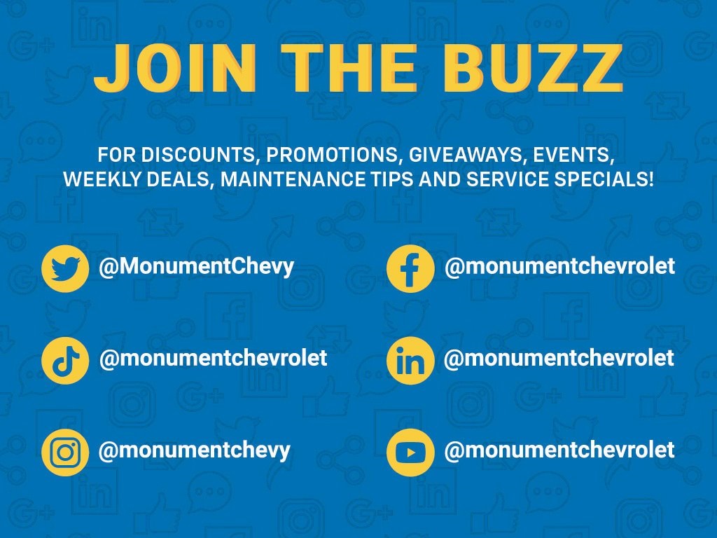 Every vehicle for sale at Monument Chevrolet is inspected by our qualified staff, and received a Monument Certification. You can be assured that our quality vehicles are in great condition, and are always a great value. Our commitment to customer satisfaction is our number one priority. That means we never use high pressure sales tactics, and we always offer a great value for your hard-earned money. Car Fax and Monument Inspection are available upon request. Service Dept. Open until 10PM Monday
