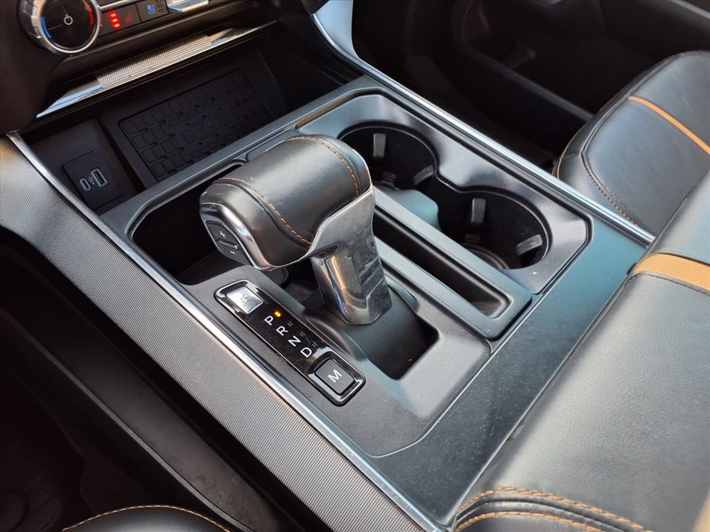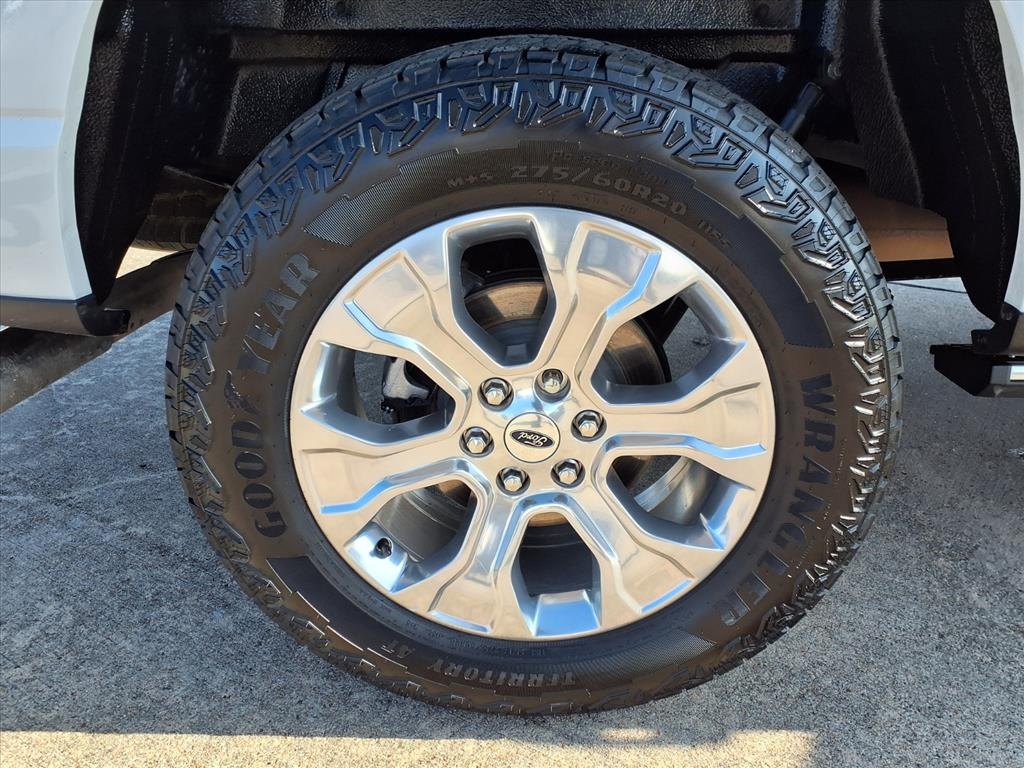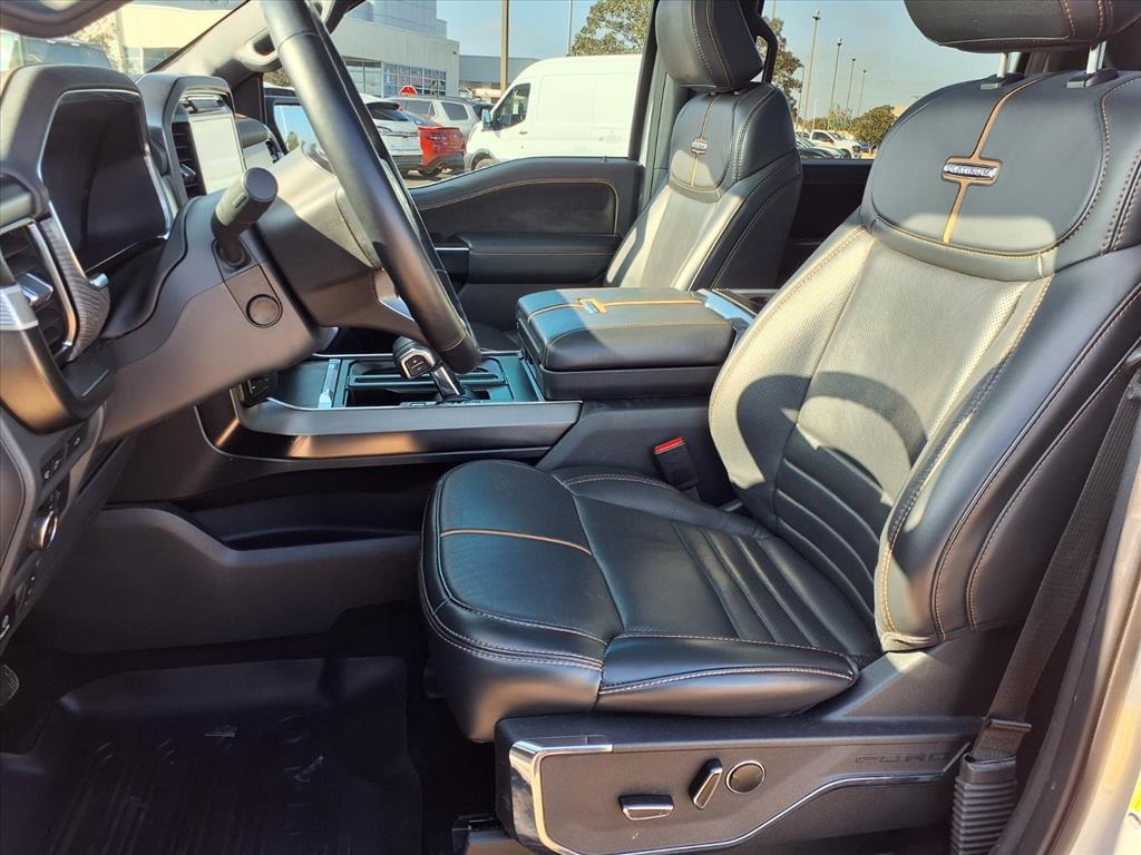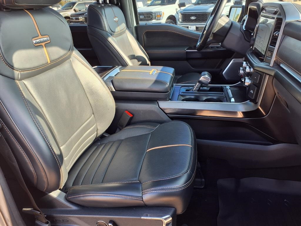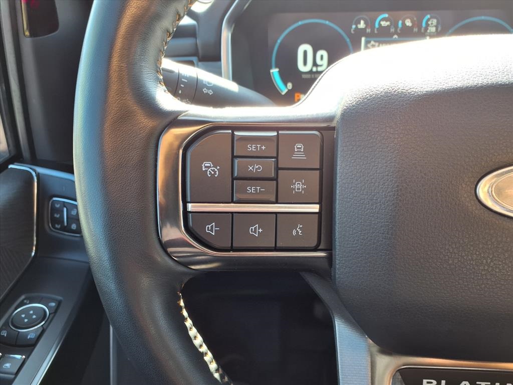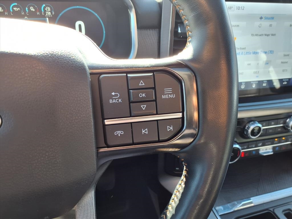 Descent Control, Monotube Rear Shocks, Off-Road Tuned Front Shock Absorbers, Rock Crawl Mode, and Tray Style Floor Liner), Trailer Tow Package (Class IV Trailer Hitch Receiver and Integrated Trailer Brake Controller), Ford Blue Advantage: Blue Certified Certified, 4WD, 20" Polished Aluminum Wheels, 4-Wheel Disc Brakes, 8 Speakers, ABS brakes, Active Park Assist 2.0 Removal, Adjustable pedals, Air Conditioning, Alloy wheels, AM/FM radio: SiriusXM with 360L, Auto High-beam Headlights, Auto Start-Stop Removal (DISC), Auto tilt-away steering wheel, Auto-dimming door mirrors, Auto-dimming Rear-View mirror, Automatic temperature control, Brake assist, Bumpers: body-color, Compass, Delay-off headlights, Driver door bin, Driver vanity mirror, Dual front impact airbags, Dual front side impact airbags, Electronic Stability Control, Emergency communication system: SYNC 4 911 Assist, Extended Range 36 Gallon Fuel Tank, Exterior Parking Camera Rear, Front anti-roll bar, Front Bucket Seats, Front Center Armrest, Front dual zone A/C, Front fog lights, Front reading lights, Front wheel independent suspension, Fully automatic headlights, Garage door transmitter, Heated door mirrors, Heated front seats, Heated rear seats, Heated steering wheel, Illuminated entry, Interior Work Surface, LED Sideview Mirror Spotlights, Low tire pressure warning, Memory seat, Multicontour Seats w/Active Motion Removal, Occupant sensing airbag, Outside temperature display, Overhead airbag, Overhead console, Panic alarm, Passenger door bin, Passenger vanity mirror, Pedal memory, Power door mirrors, Power driver seat, Power passenger seat, Power steering, Power windows, Radio data system, Radio: B&O Sound System by Bang & Olufsen, Rain sensing wipers, Rear reading lights, Rear seat center armrest, Rear step bumper, Rear window defroster, Remote keyless entry, Security system, Speed control, Speed-sensing steering, Split folding rear seat, Steering Wheel Heat Removal (DISC), Steering wheel memory, Steering wheel mounted audio controls, SYNC 4 w/Enhanced Voice Recognition, Tachometer, Telescoping steering wheel, Tilt steering wheel, Traction control, Trip computer, Turn signal indicator mirrors, Twin Panel Moonroof, Unique Multi-Contour Leather Bucket Seats, Variably intermittent wipers, Ventilated front seats, and Voltmeter.