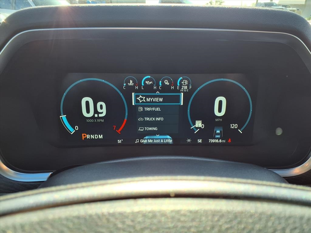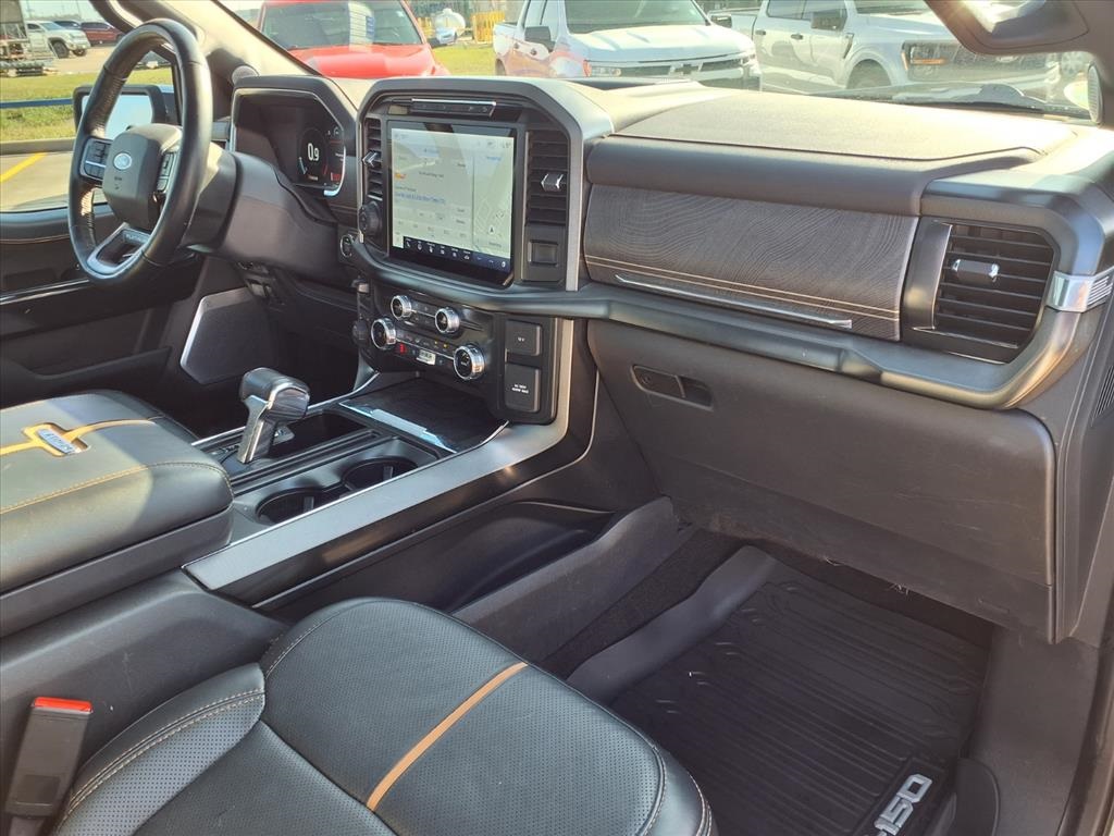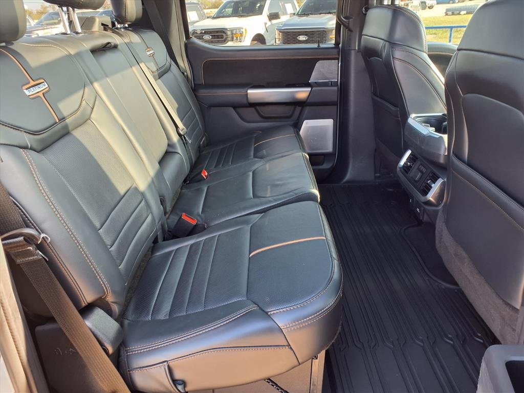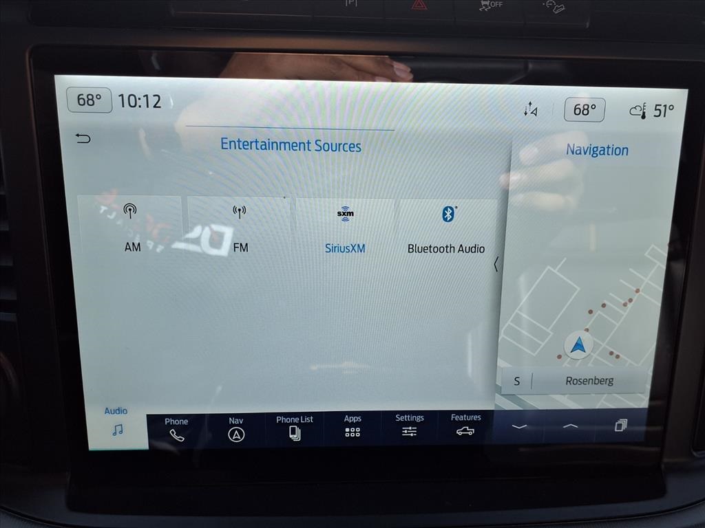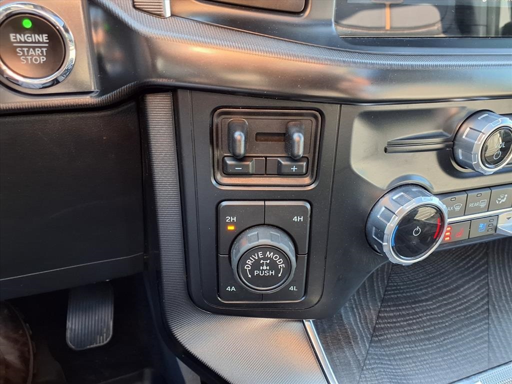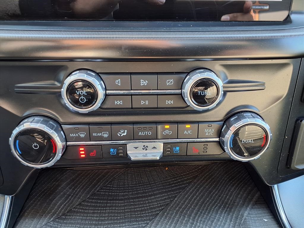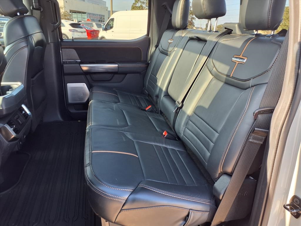 Descent Control, Monotube Rear Shocks, Off-Road Tuned Front Shock Absorbers, Rock Crawl Mode, and Tray Style Floor Liner), Trailer Tow Package (Class IV Trailer Hitch Receiver and Integrated Trailer Brake Controller), Ford Blue Advantage: Blue Certified Certified, 4WD, 20" Polished Aluminum Wheels, 4-Wheel Disc Brakes, 8 Speakers, ABS brakes, Active Park Assist 2.0 Removal, Adjustable pedals, Air Conditioning, Alloy wheels, AM/FM radio: SiriusXM with 360L, Auto High-beam Headlights, Auto Start-Stop Removal (DISC), Auto tilt-away steering wheel, Auto-dimming door mirrors, Auto-dimming Rear-View mirror, Automatic temperature control, Brake assist, Bumpers: body-color, Compass, Delay-off headlights, Driver door bin, Driver vanity mirror, Dual front impact airbags, Dual front side impact airbags, Electronic Stability Control, Emergency communication system: SYNC 4 911 Assist, Extended Range 36 Gallon Fuel Tank, Exterior Parking Camera Rear, Front anti-roll bar, Front Bucket Seats, Front Center Armrest, Front dual zone A/C, Front fog lights, Front reading lights, Front wheel independent suspension, Fully automatic headlights, Garage door transmitter, Heated door mirrors, Heated front seats, Heated rear seats, Heated steering wheel, Illuminated entry, Interior Work Surface, LED Sideview Mirror Spotlights, Low tire pressure warning, Memory seat, Multicontour Seats w/Active Motion Removal, Occupant sensing airbag, Outside temperature display, Overhead airbag, Overhead console, Panic alarm, Passenger door bin, Passenger vanity mirror, Pedal memory, Power door mirrors, Power driver seat, Power passenger seat, Power steering, Power windows, Radio data system, Radio: B&O Sound System by Bang & Olufsen, Rain sensing wipers, Rear reading lights, Rear seat center armrest, Rear step bumper, Rear window defroster, Remote keyless entry, Security system, Speed control, Speed-sensing steering, Split folding rear seat, Steering Wheel Heat Removal (DISC), Steering wheel memory, Steering wheel mounted audio controls, SYNC 4 w/Enhanced Voice Recognition, Tachometer, Telescoping steering wheel, Tilt steering wheel, Traction control, Trip computer, Turn signal indicator mirrors, Twin Panel Moonroof, Unique Multi-Contour Leather Bucket Seats, Variably intermittent wipers, Ventilated front seats, and Voltmeter.