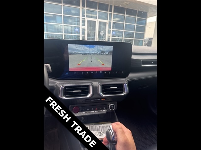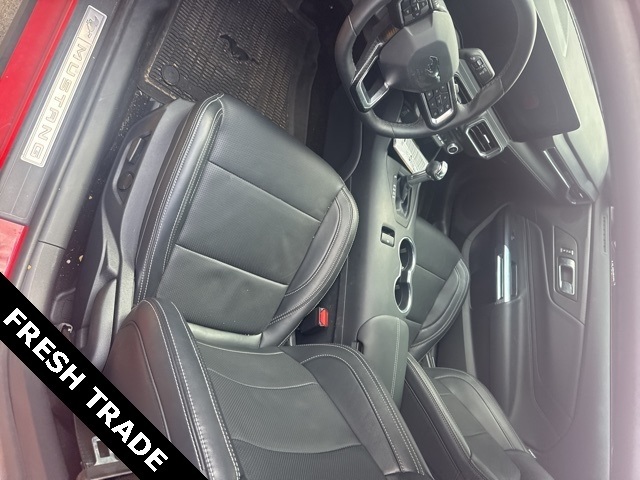 l front impact airbags, Dual front side impact airbags, Electronic Stability Control, Emergency communication system: 911 Assist, Exterior Parking Camera Rear, Four wheel independent suspension, Front anti-roll bar, Front Bucket Seats, Front Center Armrest, Front dual zone A/C, Front reading lights, Fully automatic headlights, Illuminated entry, Knee airbag, Leather Shift Knob, Leather steering wheel, Low tire pressure warning, Occupant sensing airbag, Outside temperature display, Overhead airbag, Overhead console, Panic alarm, Passenger door bin, Passenger vanity mirror, Power door mirrors, Power steering, Power windows, Radio data system, Rain sensing wipers, Rear anti-roll bar, Rear Parking Sensors, Rear window defroster, Remote keyless entry, Speed control, Speed-sensing steering, Speed-Sensitive Wipers, Split folding rear seat, Spoiler, Sport steering wheel, Steering wheel mounted audio controls, SYNC 4, Tachometer, Telescoping steering wheel, Tilt steering wheel, Traction control, Trip computer, Variably intermittent wipers, and Voltmeter.