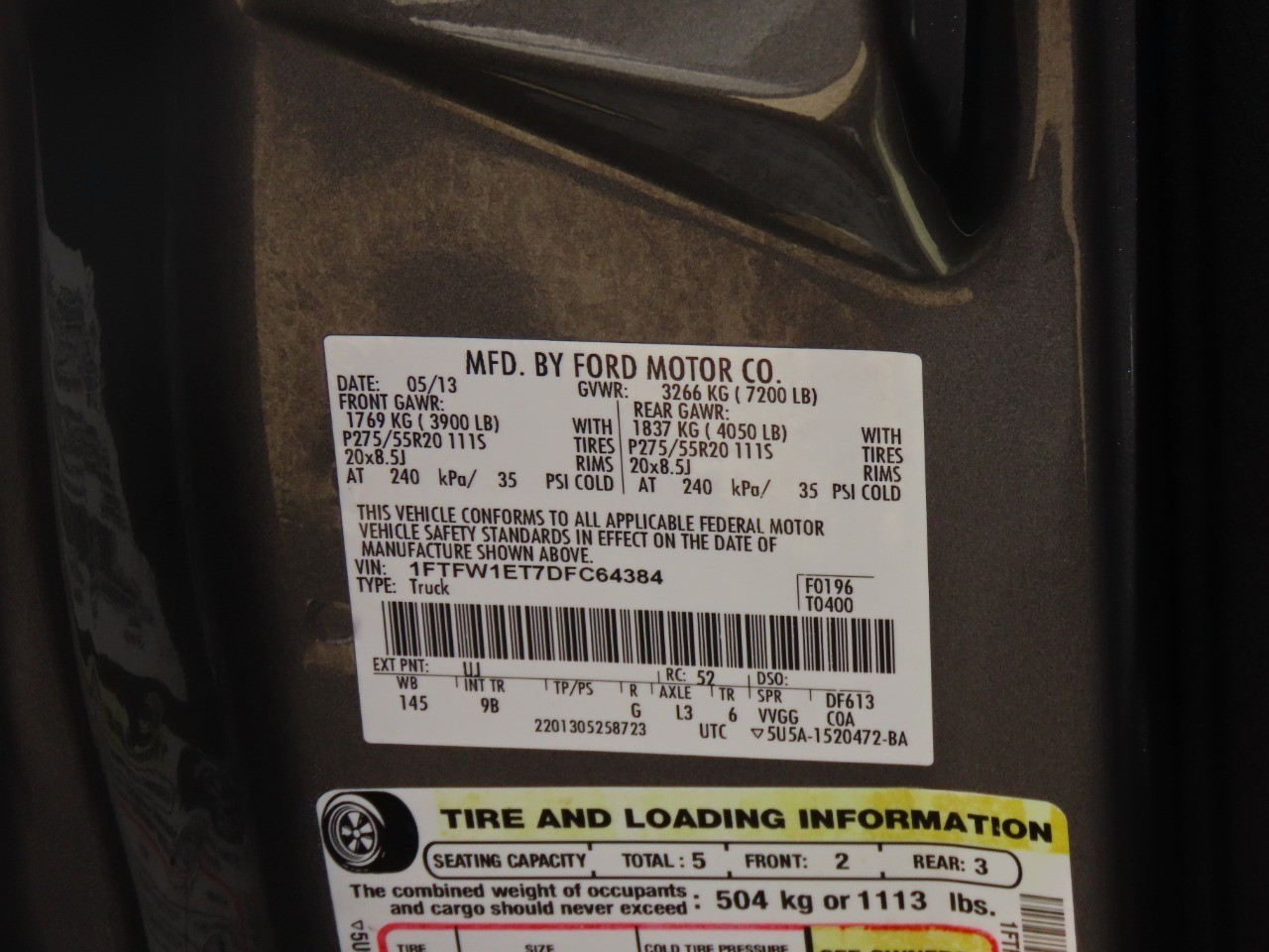 Buy with confidence, thanks to a CarFax Title history report! It has had only one previous owner. Tow your boat, camper, motorcycle, just go have some fun! Gross Vehicle Weight Rating (GVWR) of 7,200+ lbs, 365 horsepower, 420 foot-pounds of torque, 3.5L V6 Ecoboost, 6-Speed A/T, Four Wheel Drive, and crew cab with a short bed. The alarm system is a great feature for parking outdoors. Don't know how much pressure is in your tires? This 2013 F-150 does. Just check the handy tire pressure moni