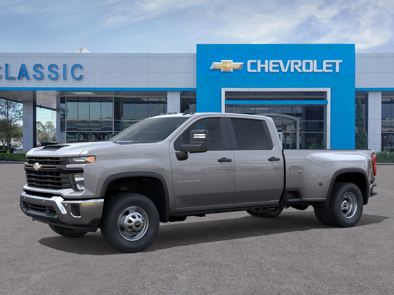 utomatic - Drivetrain: Four Wheel Drive (4WD) - GVWR: 14,000 lbs. (6,350 kg) with dual rear wheels - Rear Axle: 3.42 Ratio Towing and Utility: Designed with towing in mind, this truck comes equipped with a Gooseneck/5th Wheel Prep Package and a dealer-installed Hitch Package featuring a gooseneck ball and chain tie-down kit. Along with trailer mirrors and a high idle switch, this Silverado is expertly outfitted for heavy-duty hauling. Safety and Technology: Safety is paramount with features like the WT Safety Package, which includes: - Front and Rear Park Assist - Lane Change Alert with Side Blind Zone Alert - Rear Cross Traffic Alert - Chrome rear bumper Stay connected with smart device integration and a WiFi hotspot, while the back-up camera and tire pressure monitoring ensure added peace of mind on the road. Convenience and Comfort: - WT Convenience Package: Features an EZ Lift power lock and release tailgate, tinted windows, rear-window defogger, and power trailer mirrors. - Keyless Start and Entry for effortless access - Adjustable Steering Wheel for personal comfort - Vinyl seats with a split bench and pass-through rear seat for versatile passenger and cargo options Additional Features: - 17-inch painted steel wheels - Trailer mirrors: Power-adjustable, heated, and auto-dimming with turn indicators - Skid plates guarding essential components - Multiple power outlets, including a 120V interior and cargo bed outlet The 2026 Chevrolet Silverado 3500HD 4WD Crew Cab is more