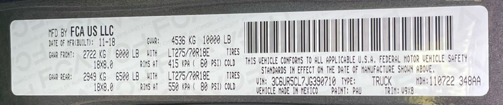 • Wheels: 18" x 8.0" Steel Chrome Clad