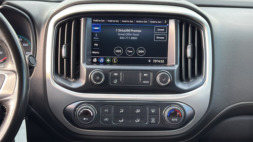 E, Trailering Package, 4-Wheel Disc Brakes, 6 Speakers, 6-Speaker Audio System Feature, ABS brakes, Air Conditioning, Alloy wheels, AM/FM radio: SiriusXM, Apple CarPlay/Android Auto, Auto-dimming Rear-View mirror, Automatic Locking Rear Differential, Automatic temperature control, Black Spray-On Bedliner w/GMC Logo, Bumpers: body-color, Cloth Seat Trim, Compass, Delay-off headlights, Driver 6-Way Power Seat Adjuster, Driver door bin, Driver vanity mirror, Dual front impact airbags, Dual front side impact airbags, Electronic Stability Control, Emergency communication system: OnStar and GMC Connected Services capable, Exterior Parking Camera Rear, Front anti-roll bar, Front Bucket Seats, Front Center Armrest, Front fog lights, Front License Plate Kit, Front reading lights, Front wheel independent suspension, Fully automatic headlights, Heated door mirrors, Hitch Guidance, Illuminated entry, Low tire pressure warning, Occupant sensing airbag, Outside temperature display, Overhead airbag, Overhead console, Panic alarm, Passenger door bin, Passenger vanity mirror, Power door mirrors, Power driver seat, Power steering, Power windows, Premium audio system: GMC Infotainment System, Radio data system, Radio: AM/FM w/8" Diagonal Color Touch-Screen, Rear reading lights, Rear seat center armrest, Rear step bumper, Rear window defroster, Remote keyless entry, Security system, SiriusXM Radio, Speed control, Speed-sensing steering, Steering wheel mounted audio controls, Tachometer, Telescoping steering wheel, Tilt steering wheel, Tow/Haul Mode, Traction control, Trip computer, Variably intermittent wipers, Wheel Locks (Set of 4) (LPO), and Wheels: 18" x 8.5" Black Painted Aluminum. 2022 GMC Canyon Elevation
