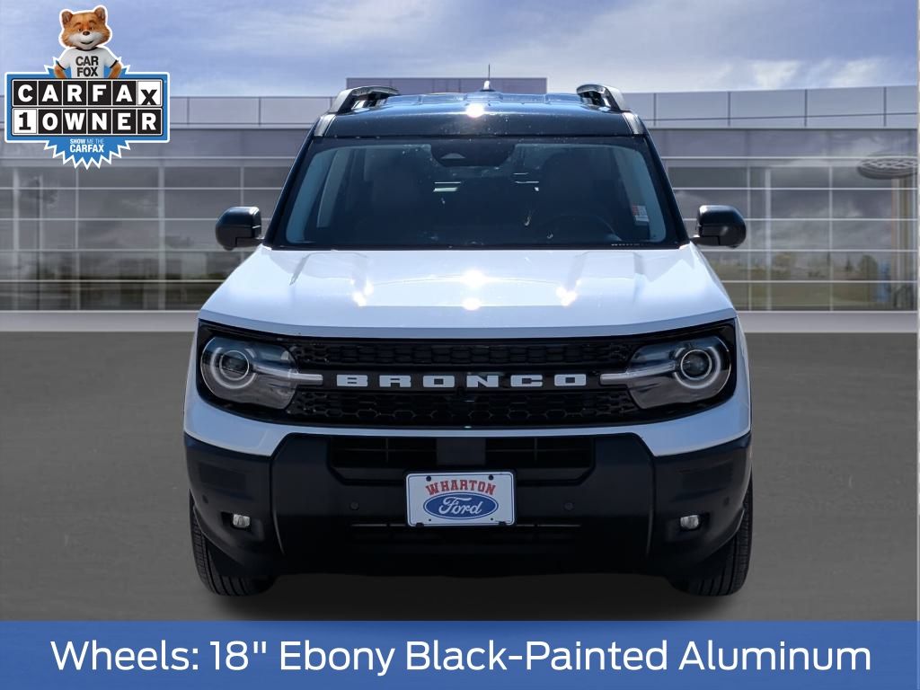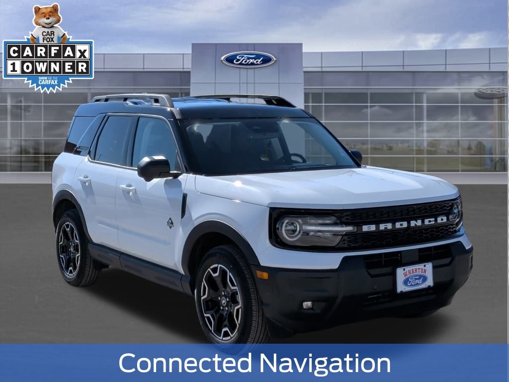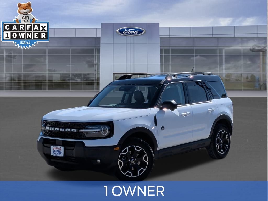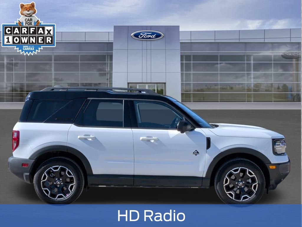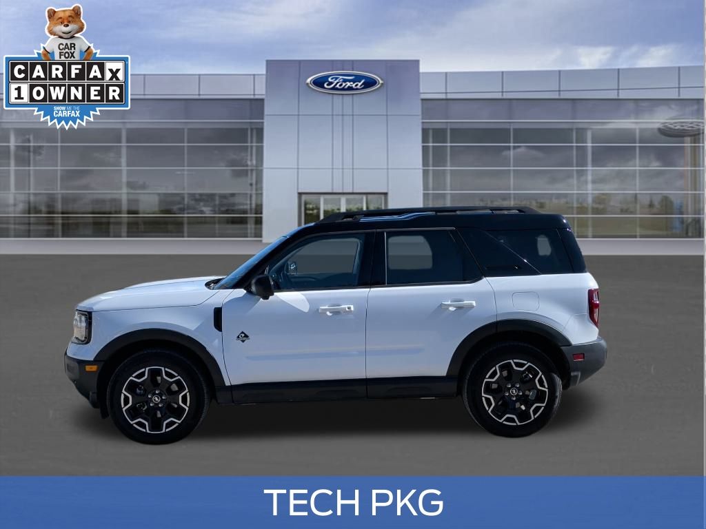 Certified. Oxford White 2025 Ford Bronco Sport Outer Banks 4WD 8-Speed Automatic 1.5L EcoBoost 1 OWNER, TECH PKG, Alloy wheels, B&O Sound System by Bang & Olufsen, Connected Navigation, Equipment Group 300A, HD Radio, Outer Banks Tech Package+, Wheels: 18" Ebony Black-Painted Aluminum.